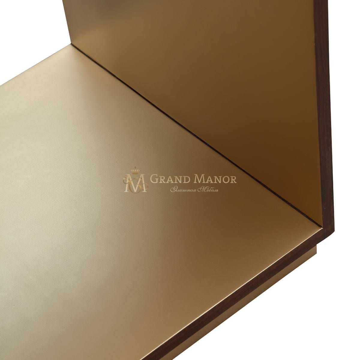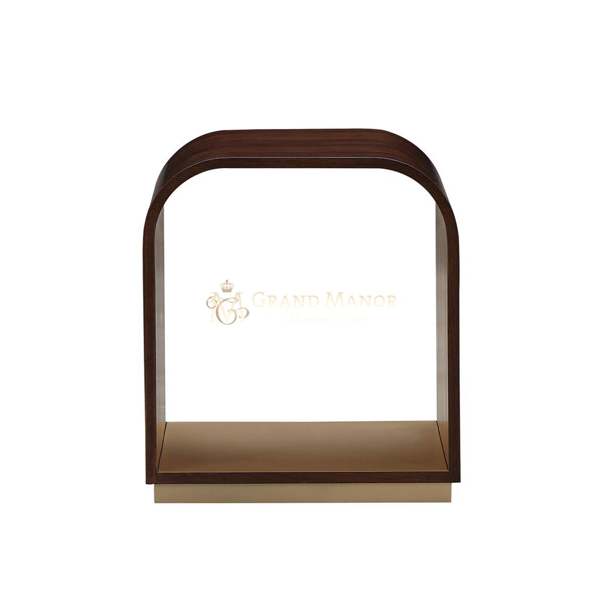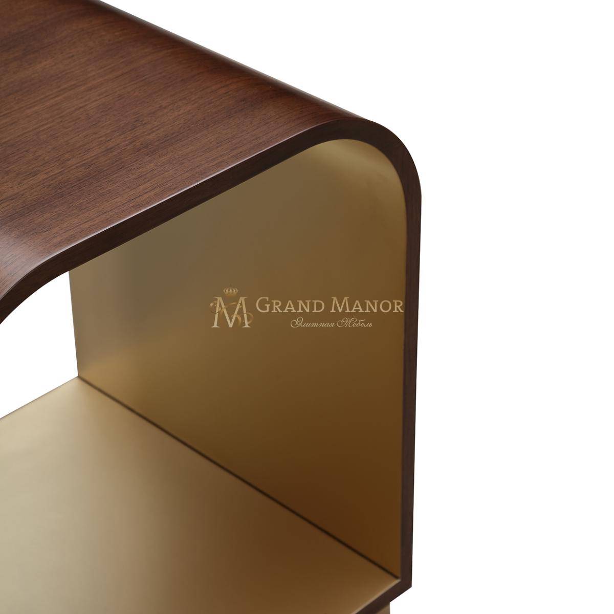 Кофейный столик Houston — это удивительное сочетание современного мастерства и функционального дизайна. Его изящная изогнутая форма подчеркивает бесшовную столешницу из орехового шпона, а открытая внутренняя поверхность сверкает в ослепительной золотой отделке. Этот смелый контраст и скульптурная форма делают его элегантным акцентом, который придаст любому жилому пространству нотку изысканной роскоши.