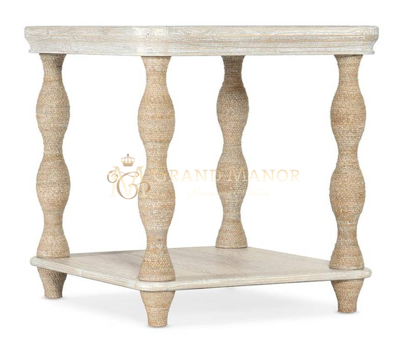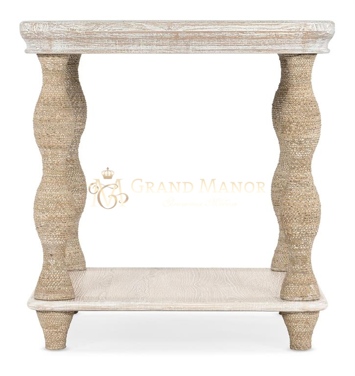 Столик Bahari, выполненный в освежающем морском стиле, сочетает в себе фигурные ножки, обернутые веревкой, с легким и воздушным покрытием из дубового шпона, обработанного проволочной щеткой Surf, что создает образ, вдохновленный непринужденной жизнью на берегу моря. Одна стационарная полка.