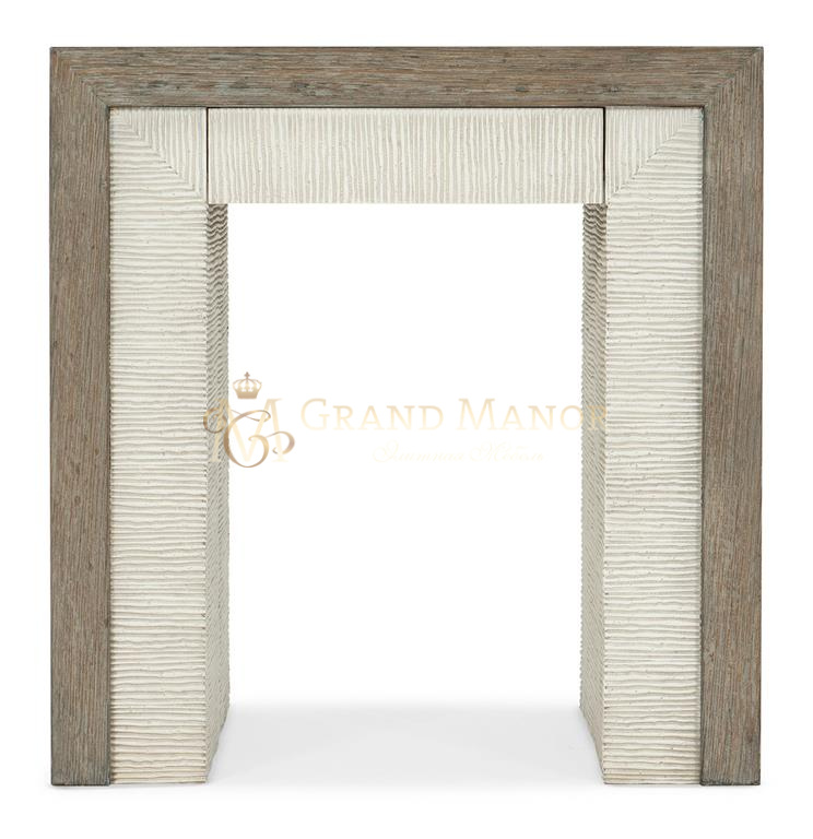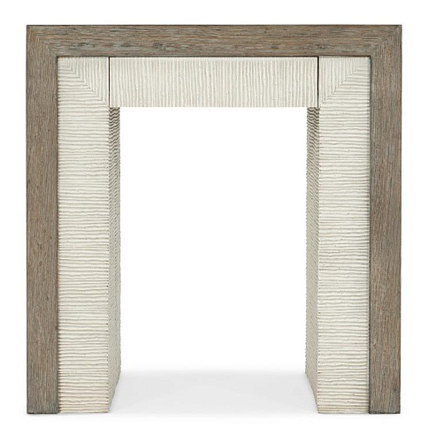 Торцевой столик Serenity Skipper с четкой двухцветной отделкой, сочетающей в себе выветрившийся серый и текстурированный серый цвет, привнесет в ваше пространство органичную атмосферу прибрежного коттеджа. Стол, изготовленный из дубового шпона и композита, оснащен одним выдвижным ящиком с направляющими для выдвижных ящиков, которые плавно закрываются.