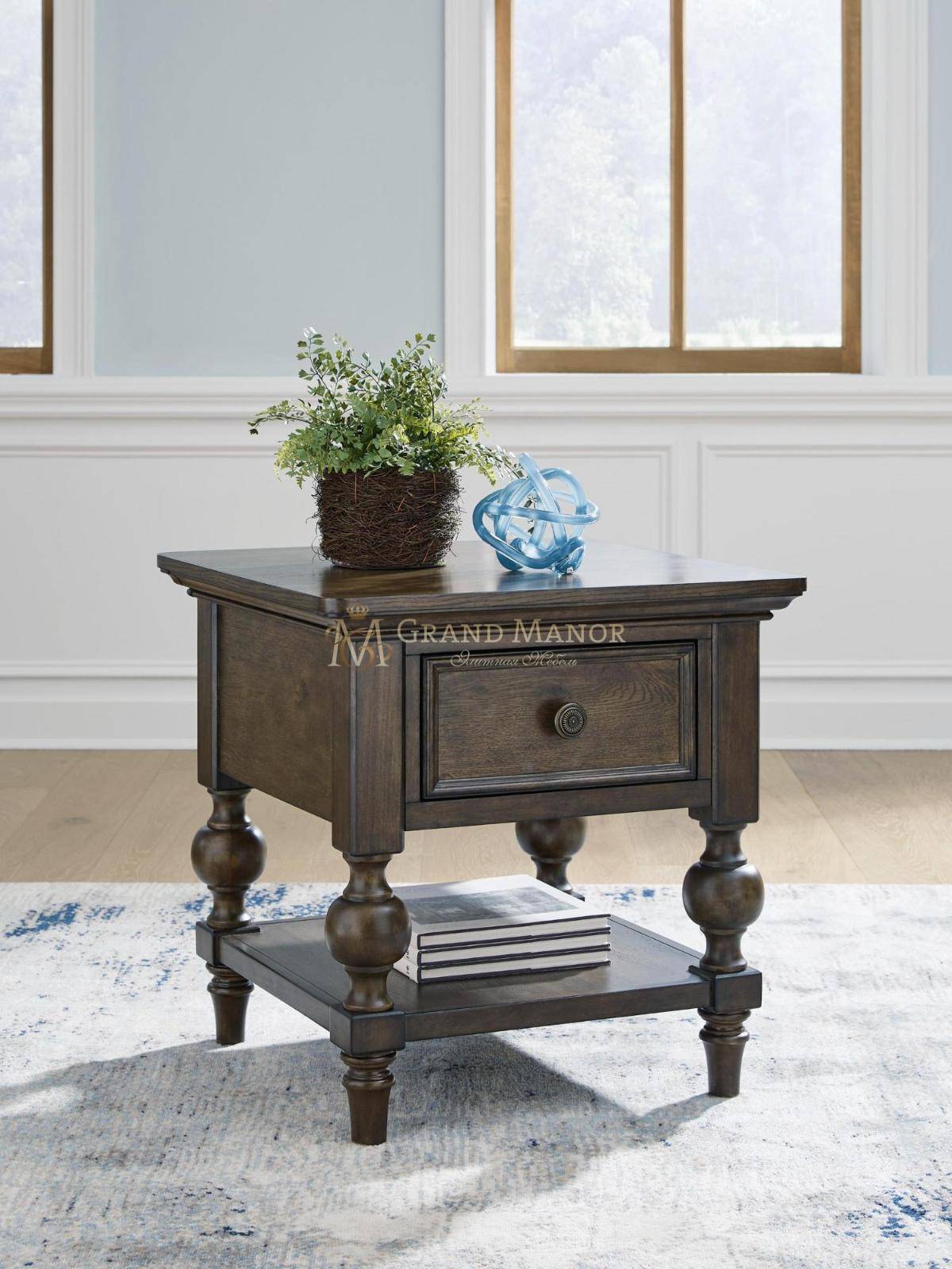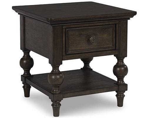Для тех, кто ценит вневременную эстетику с утончённой элегантностью, этот приставной столик станет прекрасным дополнением к вашему дому. Его богатая коричнево-ореховая отделка прекрасно сочетается с профилированной столешницей и традиционными балясинными ножками, создавая классический и изысканный облик. А мы уже упоминали о нижней полке, на которой можно разместить все ваши любимые безделушки?