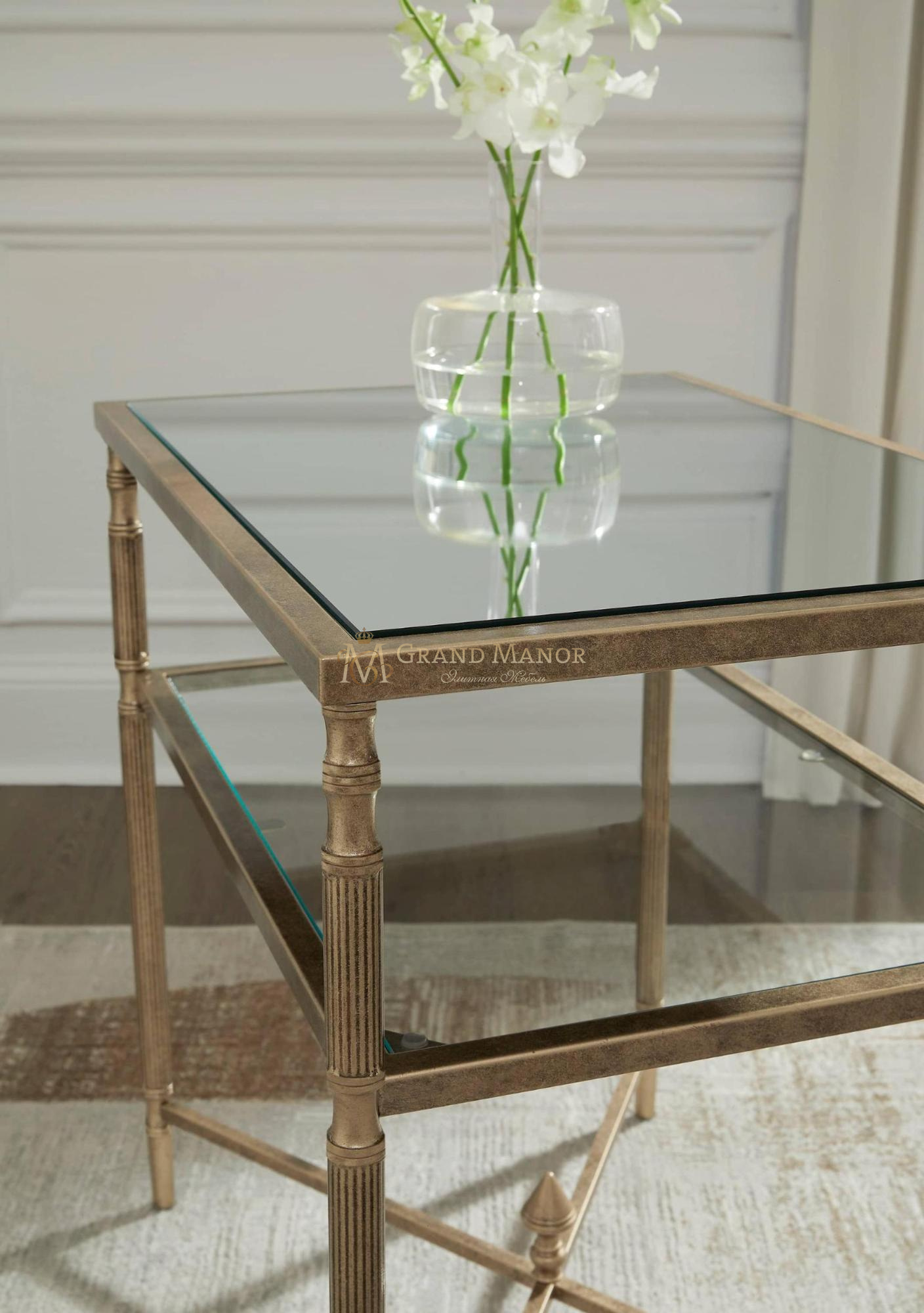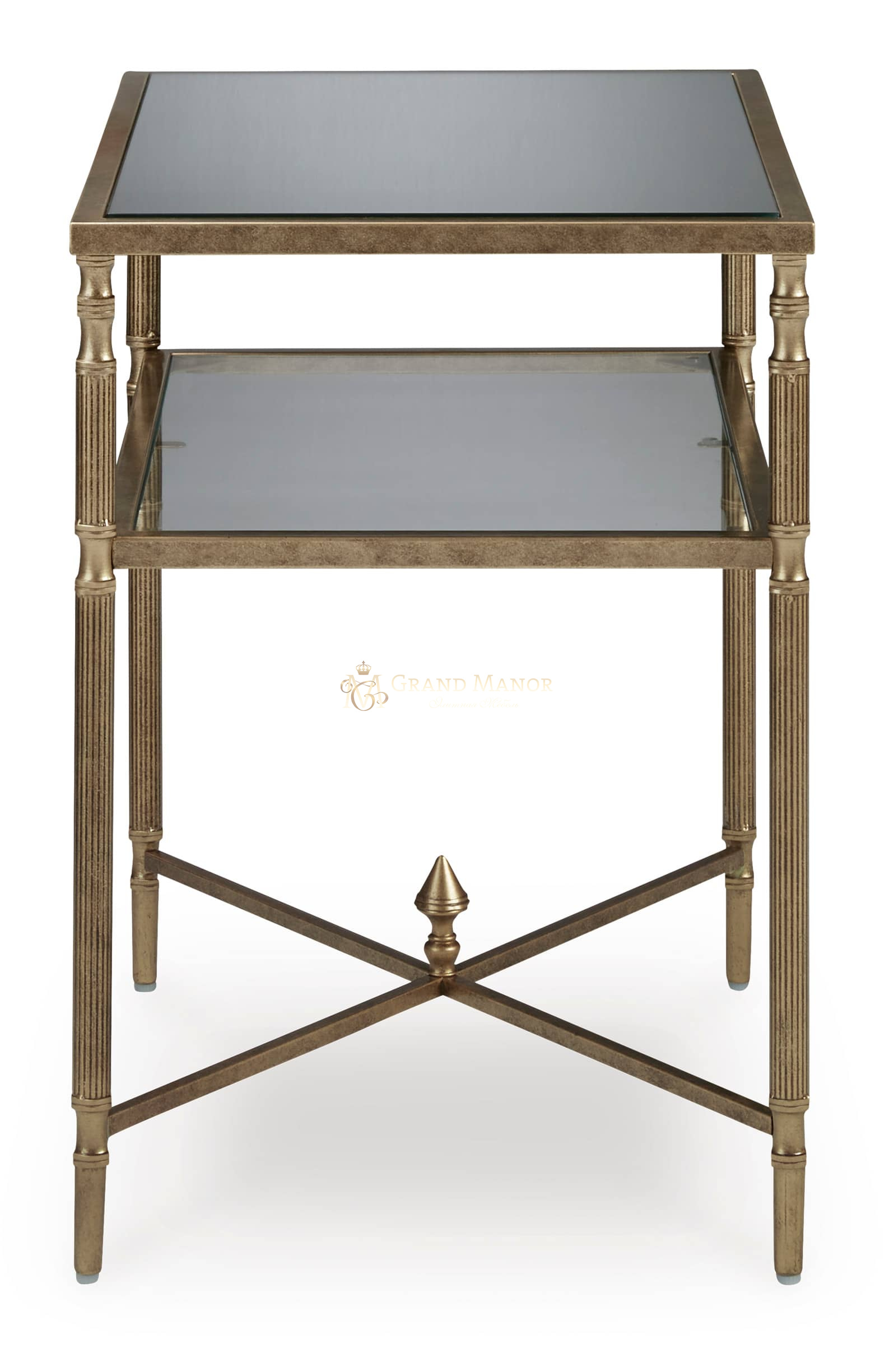 Этот столик придает традиционному дизайну прекрасную актуальность. Его детали, в том числе украшенные ножки и подрамник с декоративным центральным наконечником, являются вечной классикой. Цвет состаренного золота — это воплощение непринужденной элегантности. Нижняя полка добавляет стиль, содержание и функциональность.