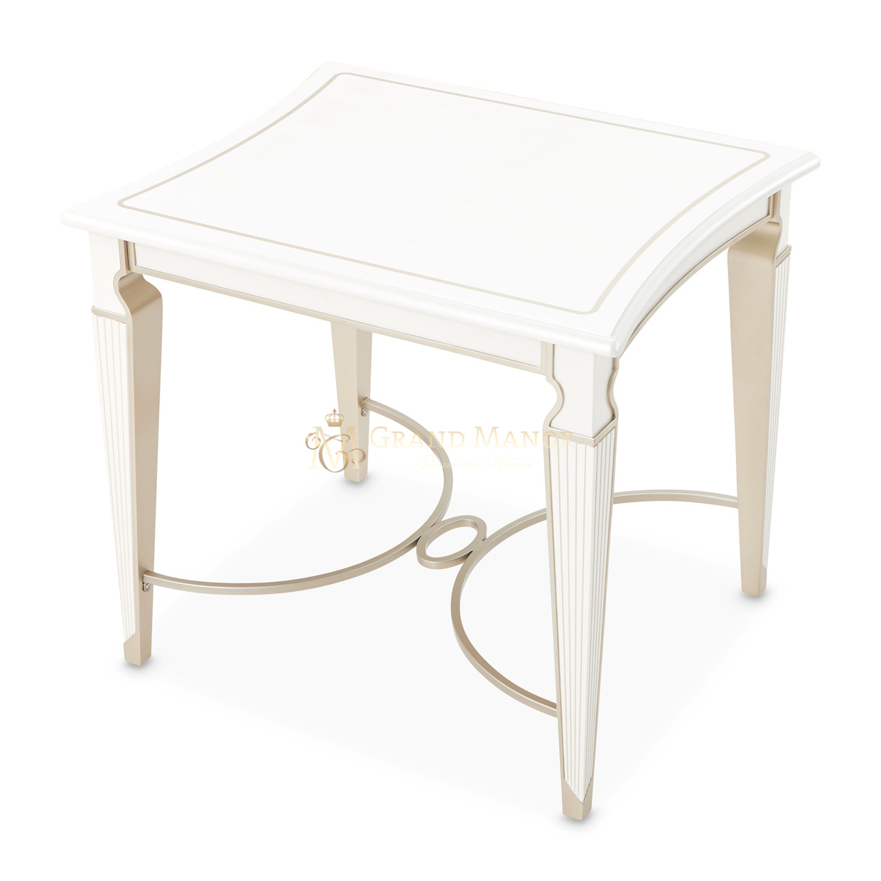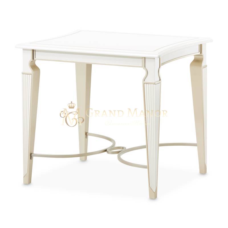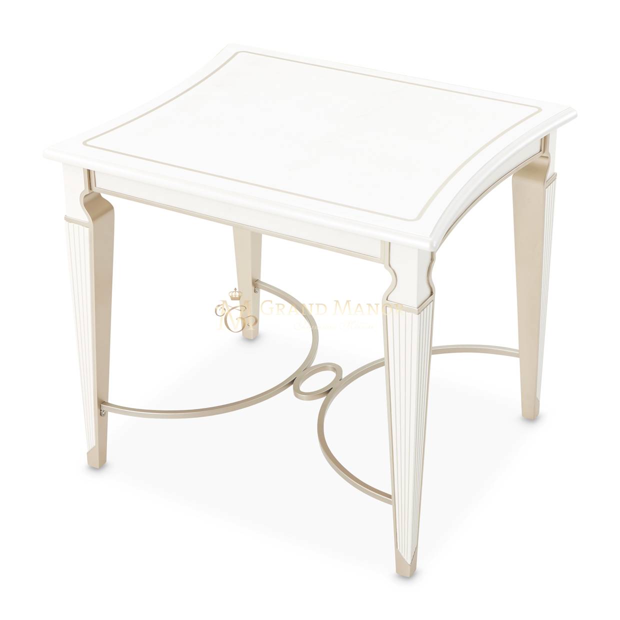 Приставной столик La Marisia — это восхитительный предмет мебели, который станет ярким акцентом в вашем доме. Его кремово-жемчужная отделка и нежные акценты цвета шампанского придают ему утончённый и воздушный вид.