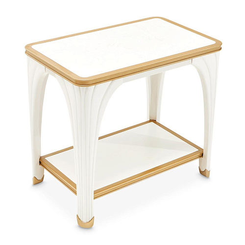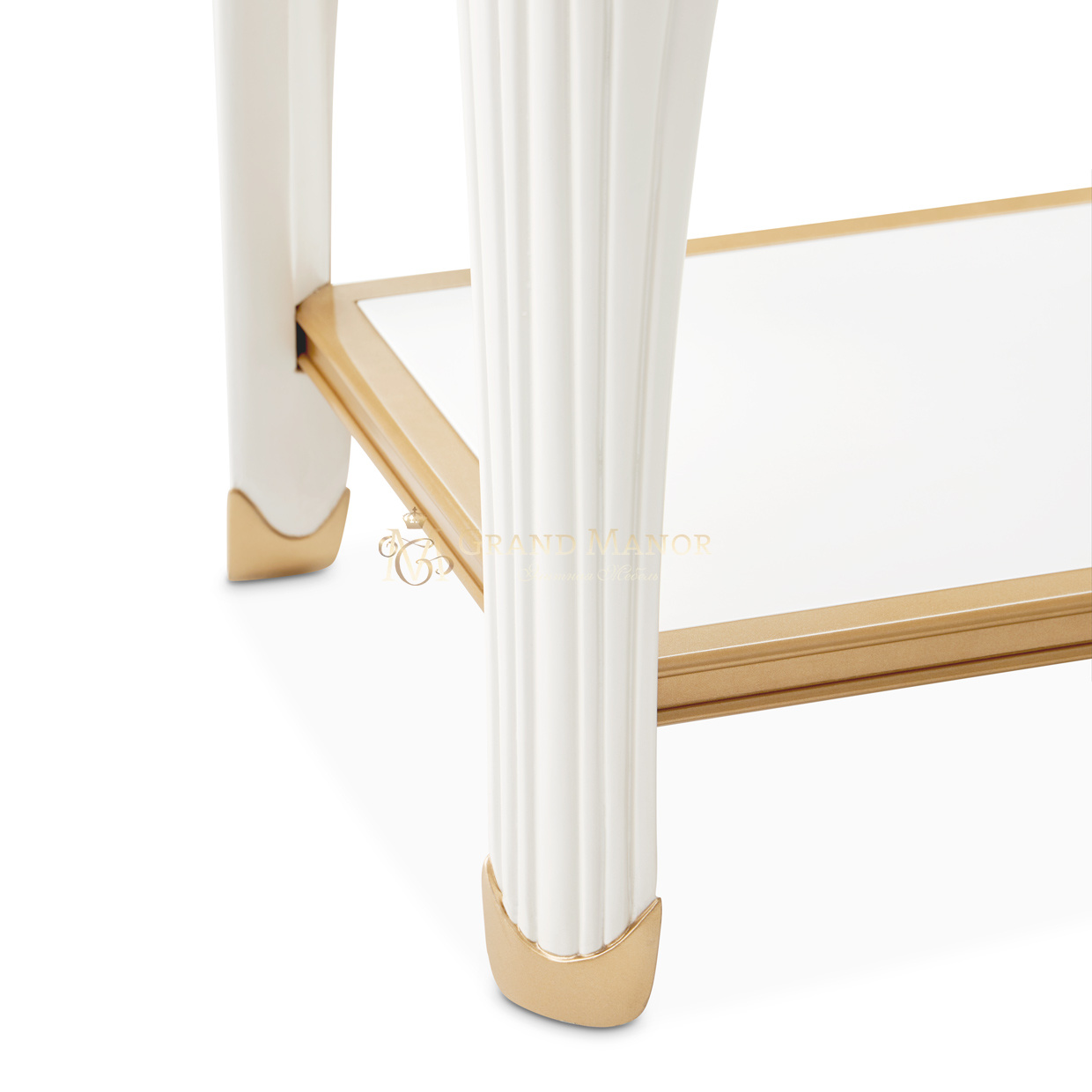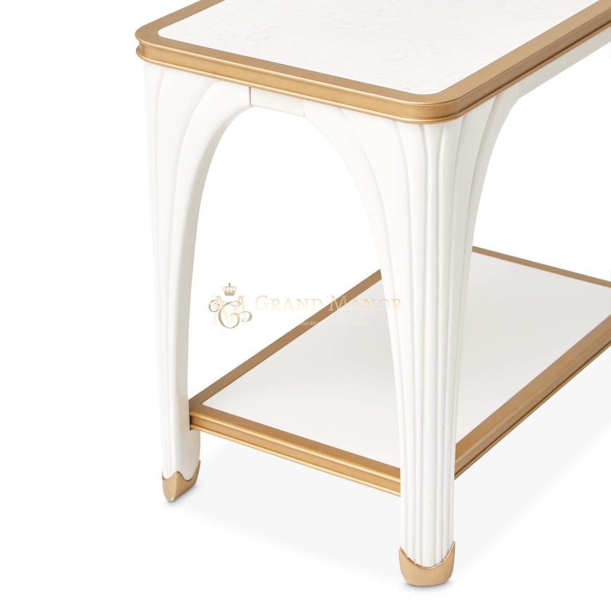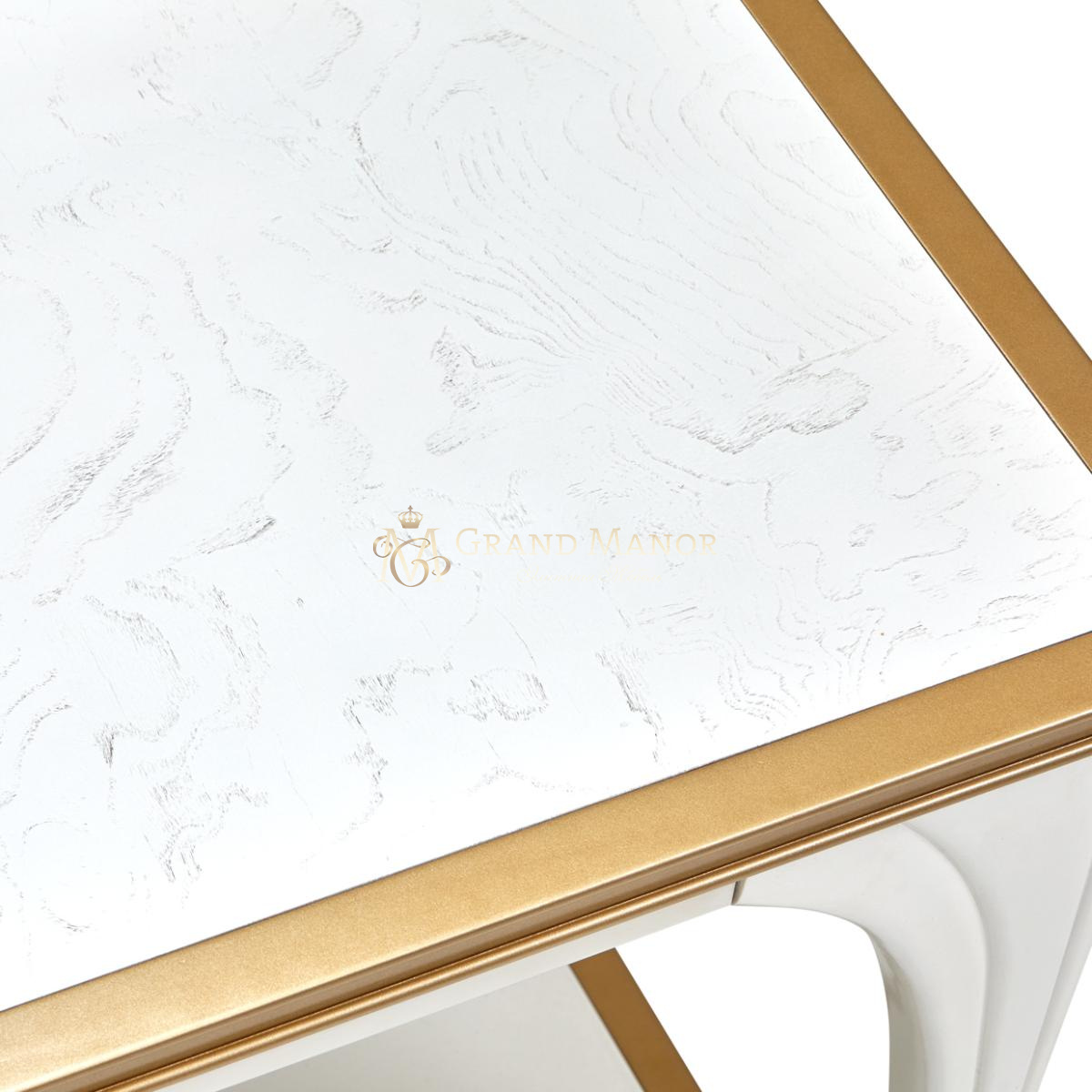 Столик La Terrazza поражает своей утонченностью и изяществом. Его скульптурные ножки с изящной рифленой поверхностью придают модели легкость и динамичность. Плавные линии и элегантные наконечники цвета шампанского притягивают взгляд от верхней поверхности стола к его основанию. Воздушный дизайн эффектно подчеркивается отделкой цвета шампанского, изящно обрамляющей столешницу и полку. Этот контраст с гладкой кремово-жемчужной поверхностью придает столику особую привлекательность. Просторная нижняя полка добавляет функциональности, делая La Terrazza идеальным сочетанием стиля и практичности.