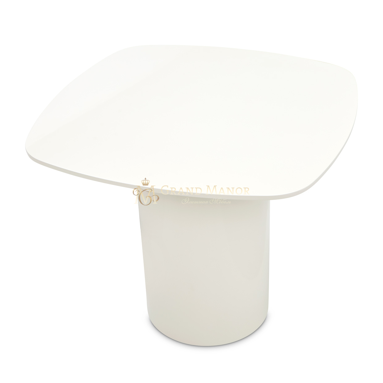 Поверхность покрыта облачно-белым лаком с глянцевым отражающим покрытием, которое подчеркивает элегантность стола и добавляет яркости вашему пространству.