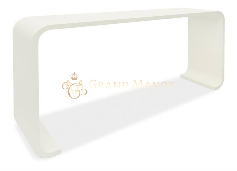 Мягкий, современный и органичный консольный столик Kai в форме округлого прямоугольника выполнен из дерева и рафии в успокаивающем песочном цвете с белой лакированной тканью, создающей атмосферу спа-салона. Это поразительное изделие глубиной всего 14 дюймов хорошо вписывается даже в узкие помещения.