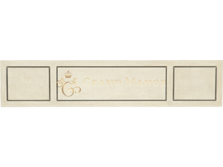 Металлическая инкрустация цвета шампанского вокруг верхней, средней и нижней полок.