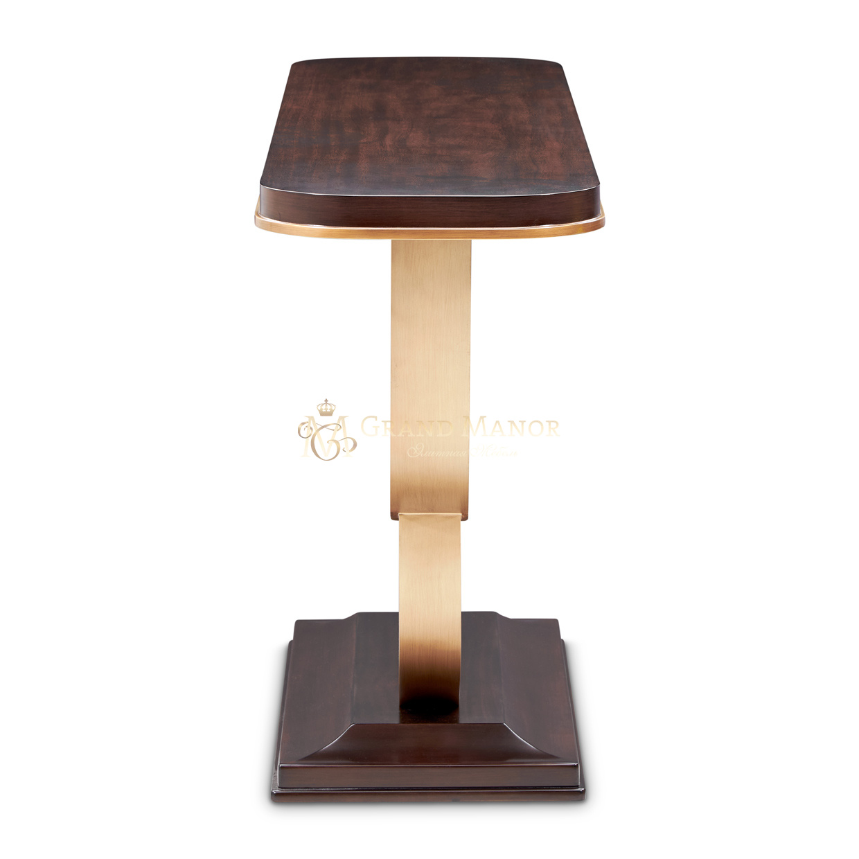 Консольный столик Camellia Field привлекает внимание своей смелостью и утонченностью. Столешница из шпона красного дерева с ореховым пеканом дополнена скульптурным основанием из античного золота, которое напоминает каскад лепестков. Этот стол идеально подходит для прихожей или жилого помещения, сочетая в себе функциональность и элегантный дизайн.