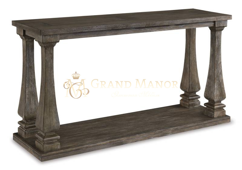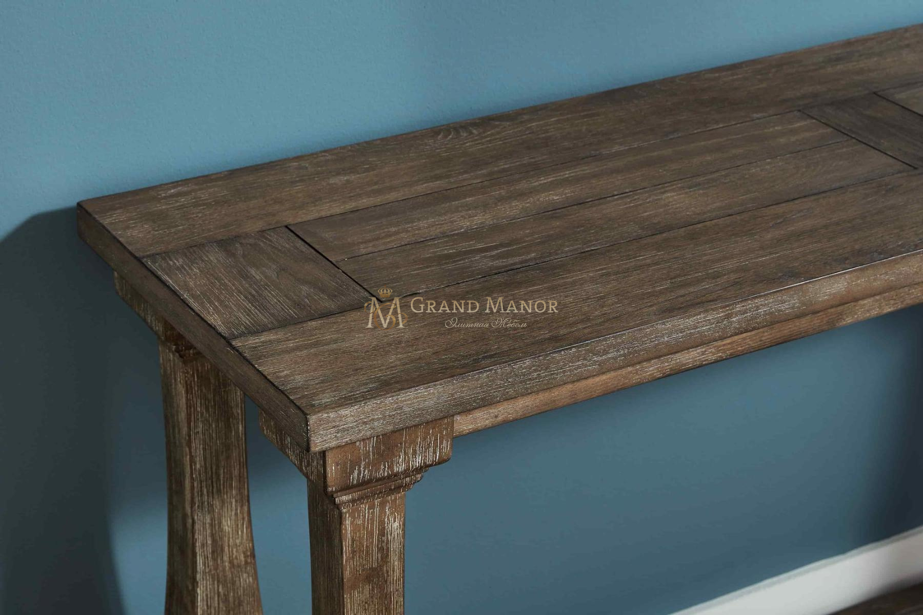 Домашний. Сердечный. Небесный оттенок. Этот консольный стол, привлекающий внимание потертой серой отделкой и квадратными балясинами, установленными на широкой нижней полке, несомненно, сделает вашу усадьбу еще более похожей на дом. Внешний вид украшен шпоном вяза и столешницей с эффектом доски в рамке, создавая богатый шедевр, который будет радовать вас долгие годы.