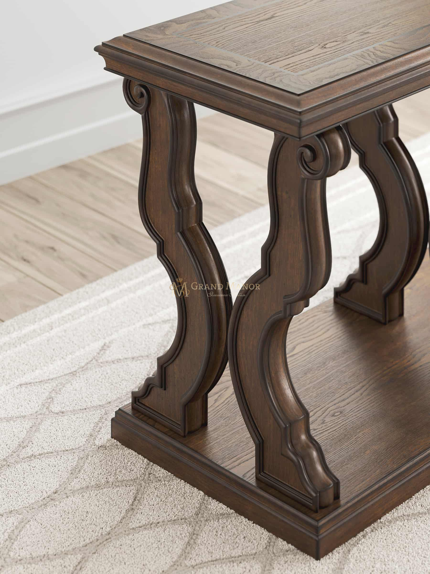 Благодаря этому диванному столику вы сможете жить в роскоши, если добавите его в свою гостиную. Его элегантные ножки с закругленными краями напоминают о классической утонченности. Декоративные детали придают ощущение роскоши царственной темно-коричневой отделке. Внешний вид неподвластен времени. А ощущения? Как у вас дома.