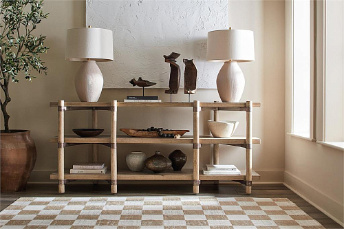 Коллекция Vineyard Row от Hooker Furniture вдохновлена органической красотой калифорнийской винодельческой страны, а вся коллекция сочетает в себе деревенский шарм и органическую эстетику долины Напа. Светлая отделка с темными акцентами, разработанная для использования в различных стилях жизни и регионах, позволяет гармонично сочетать как деревенскую, так и более изысканную обстановку. Такие детали, как обшивка из шпона высокого качества, кованая металлическая фурнитура в деревенском стиле, металлические подрамники и тонированное стекло, подчеркивают его аутентичный стиль.