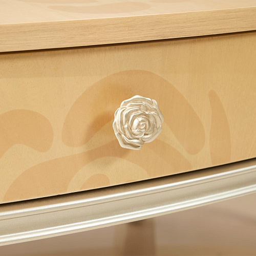 Обитый бархатом выдвижной ящик с фирменной ручкой в виде цветка камелии обеспечивает удобное хранение, а нижняя полка из тонированного стекла добавляет изделию нотку современной элегантности.