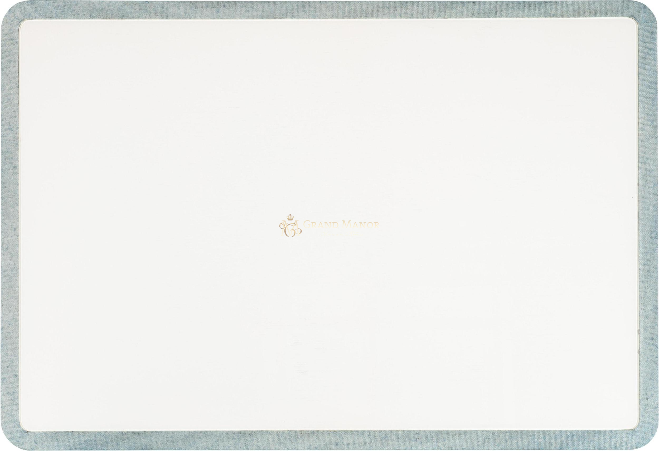 Спокойный и стильный современный коктейльный столик Atlantis в спокойной цветовой гамме, имеет форму большого прямоугольника. Закругленные углы, столешница из окрашенного закаленного стекла, отделанная рафией поверхность и белый цоколь.