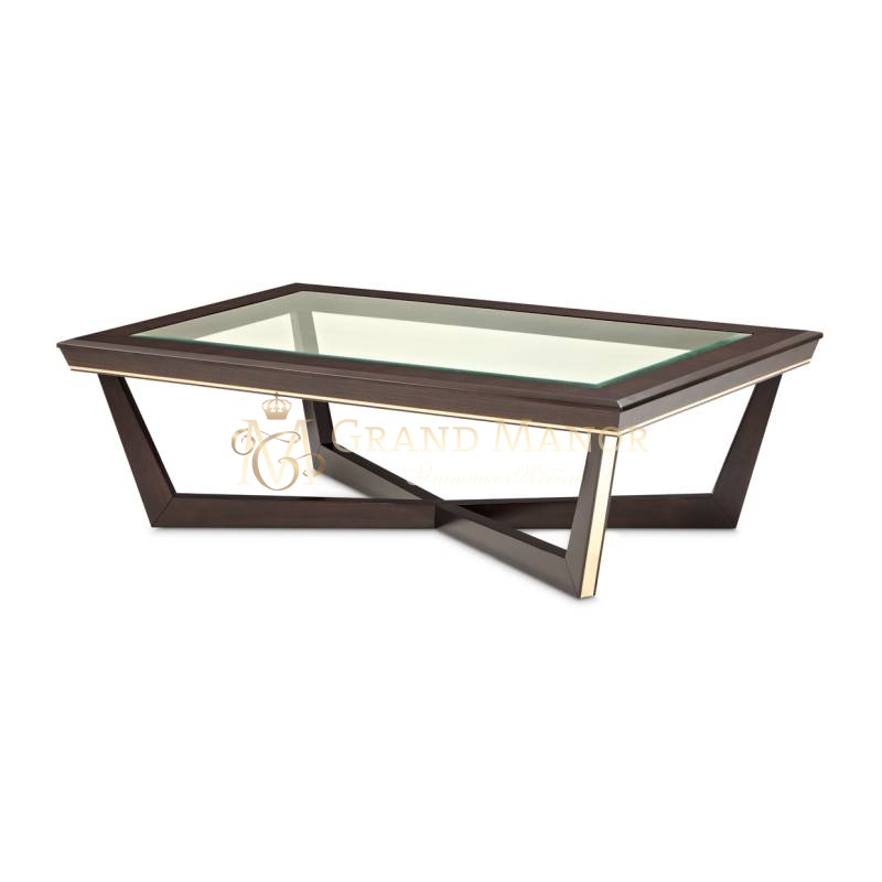 Угловатая форма добавляет столу динамики, а скошенная стеклянная столешница придаёт ему воздушную лёгкость. Этот стол идеально подходит для центральной части гостиной, привнося в любое пространство элегантность и изысканность.
