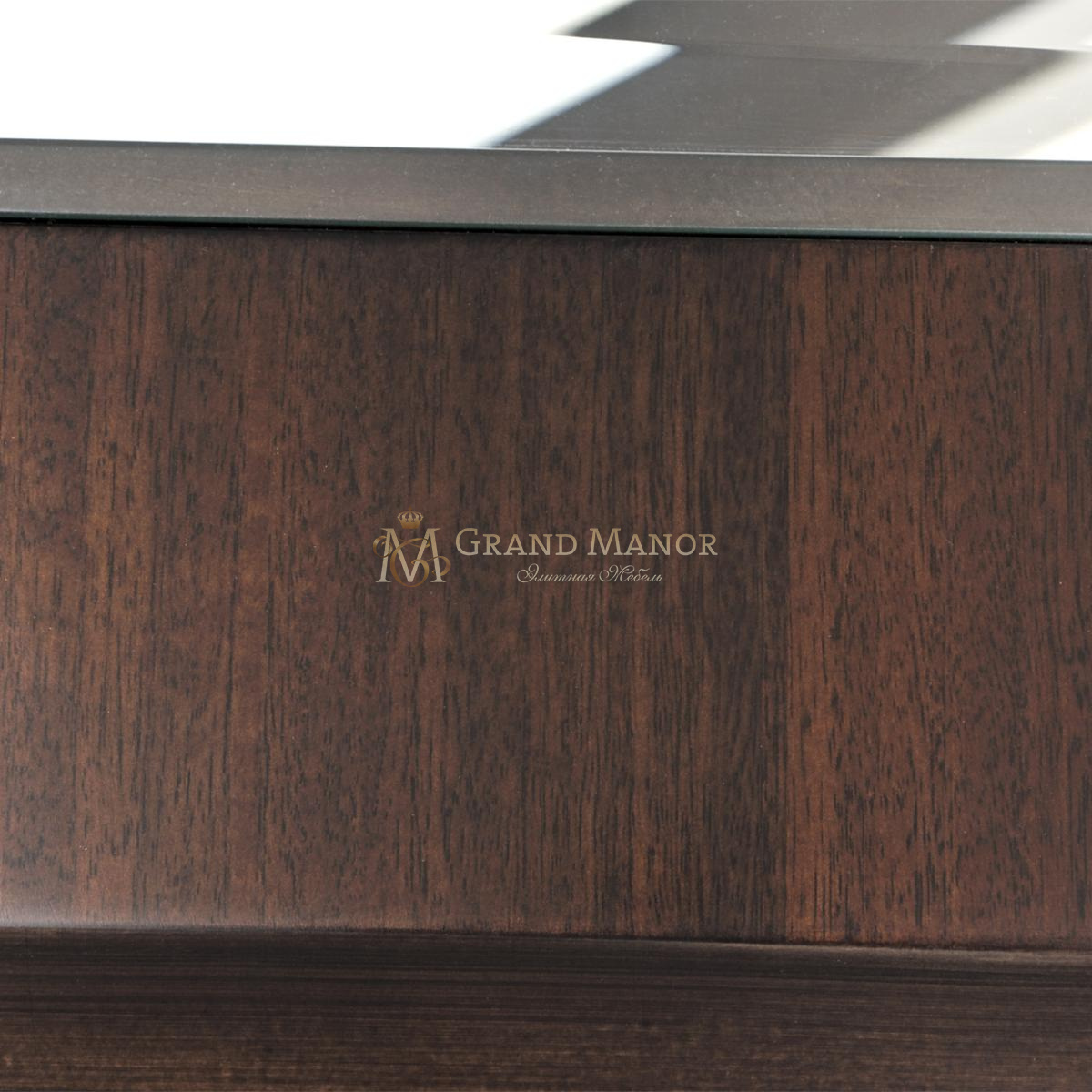 Коктейльный столик Belmont Place — это воплощение современного гламура. Его массивная рама, покрытая эвкалиптовым шпоном цвета эспрессо, украшена блестящим японским золотым сплавом, что делает его основание особенно заметным.