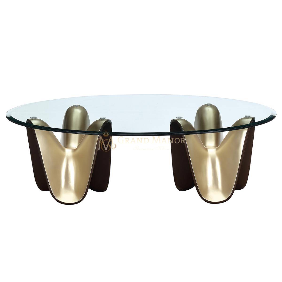 Коктейльный столик Houston — это великолепное сочетание утончённого дизайна и скульптурного мастерства. Его основание, выполненное в роскошных золотых тонах, изящно переходит в контрастную спинку орехового цвета, создавая завораживающую игру света и тени. Столешница из закалённого стекла обеспечивает кристально чистый обзор на изящную основу, позволяя дизайну столика стать центральным элементом в любом интерьере.