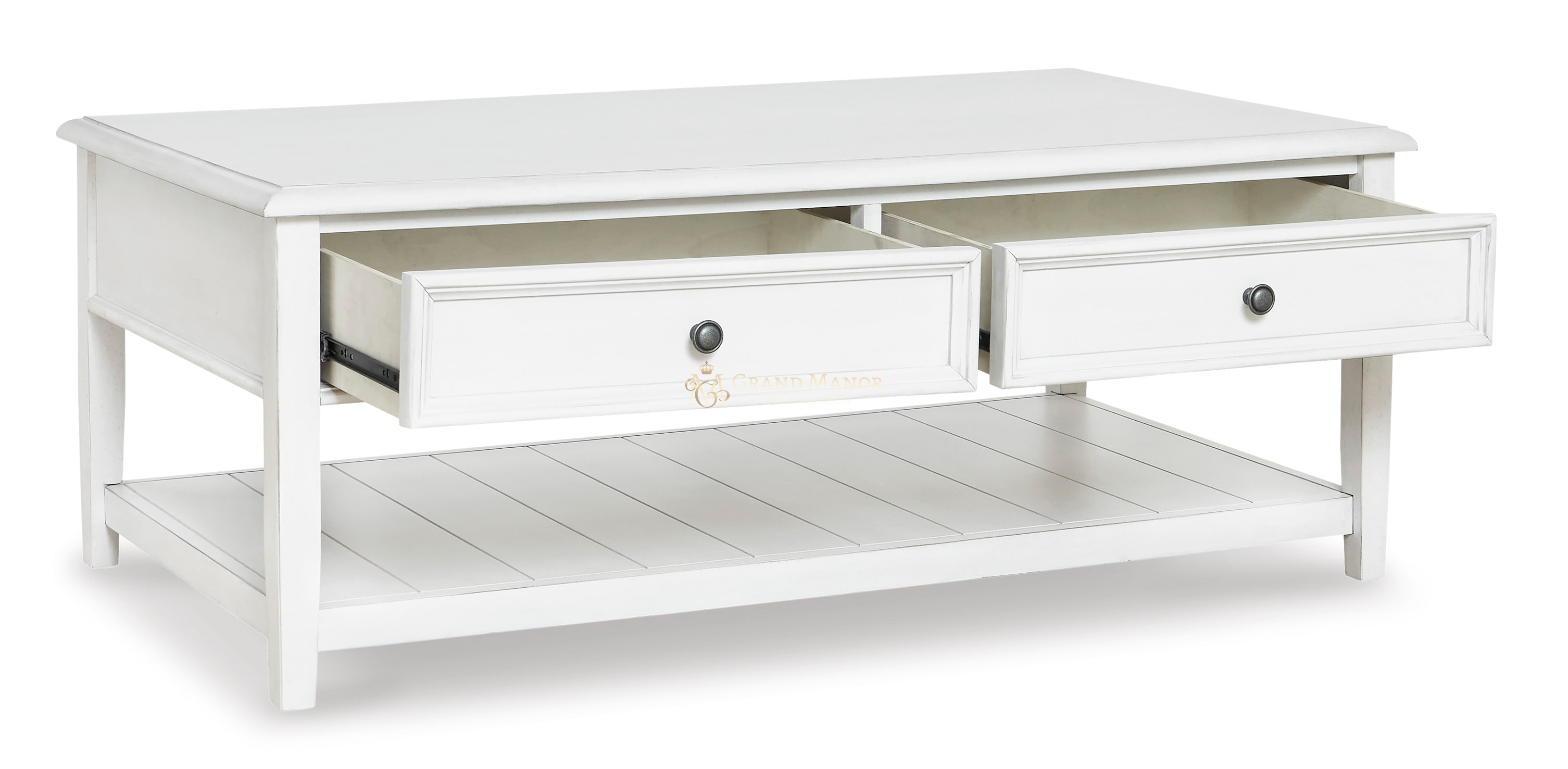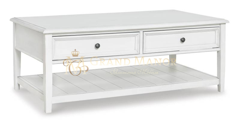 Придайте своему дому винтажный шарм и ценное место для хранения с помощью этого потрясающего журнального столика. Два ящика и вместительная витрина с красивой потертой выбеленной отделкой помогут вам держать под рукой все необходимо в кресле, в повседневном стиле.