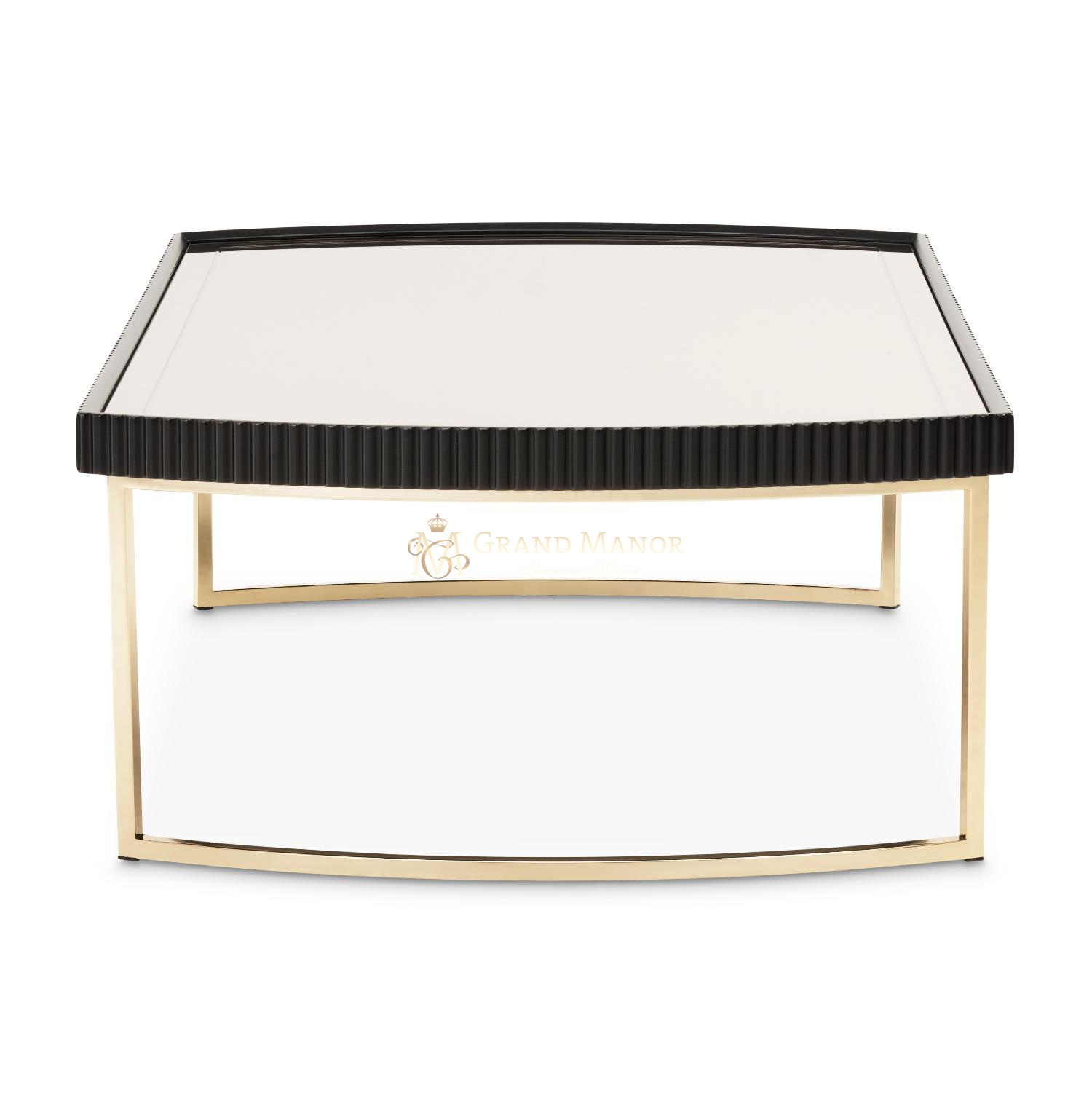 Коктейльный столик из коллекции Lisbon воплощает изысканность и роскошь благодаря своей шелковистой матово-черной столешнице, золотым ножкам и зеркальной инкрустации. Сочетание этого изысканного украшения с гарнитуром для гостиной Lisbon создает атмосферу для высококлассных развлечений и отдыха, располагающую к задушевным беседам в роскошном убежище.