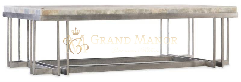 Современное искусство сочетается с органичной элегантностью в столике Mélange Marin с замысловатой основой из оловянного металла и столешницей из белого оникса Tumbles.