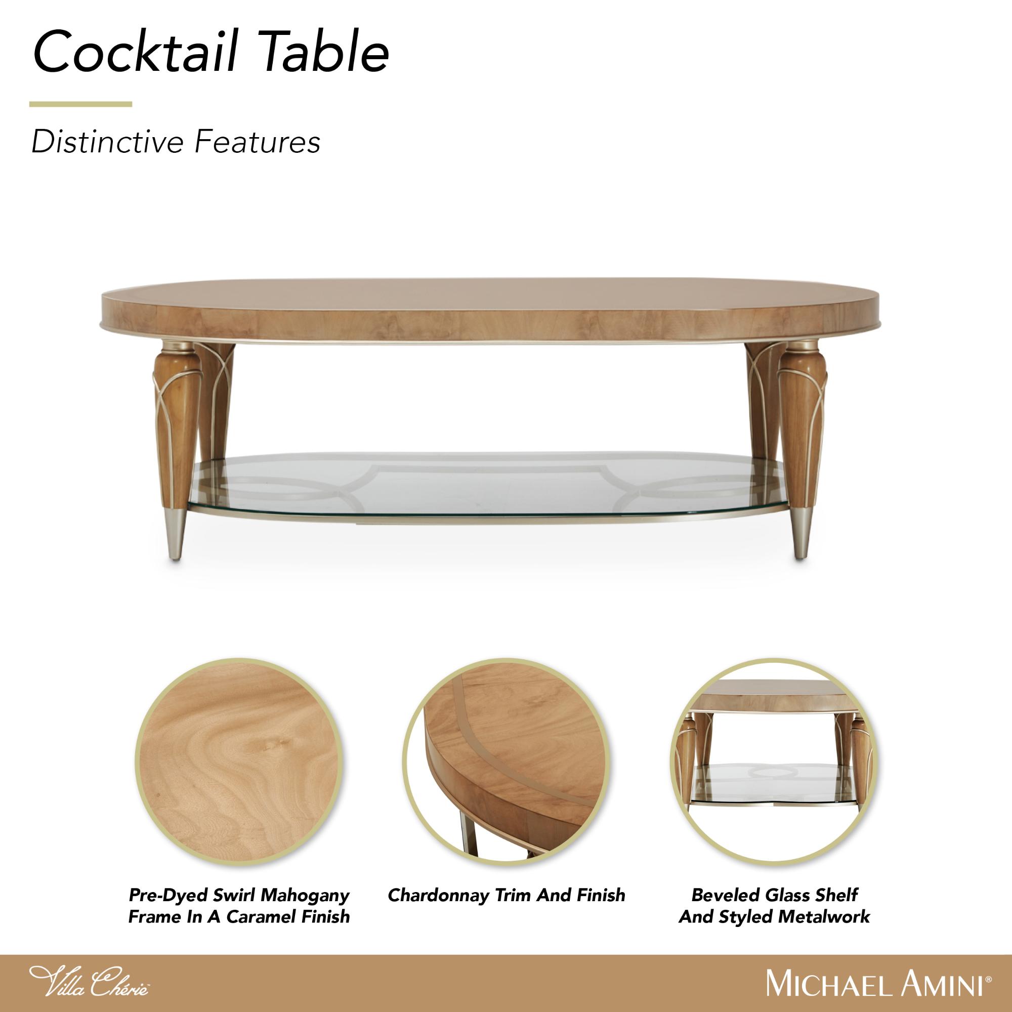 Нужно место, чтобы расставить роскошные акценты? Сложенные плюшевые накидки? Бокал или два вина? Овальный коктейльный столик Villa Cherie - самый элегантный вариант, который вы найдете.