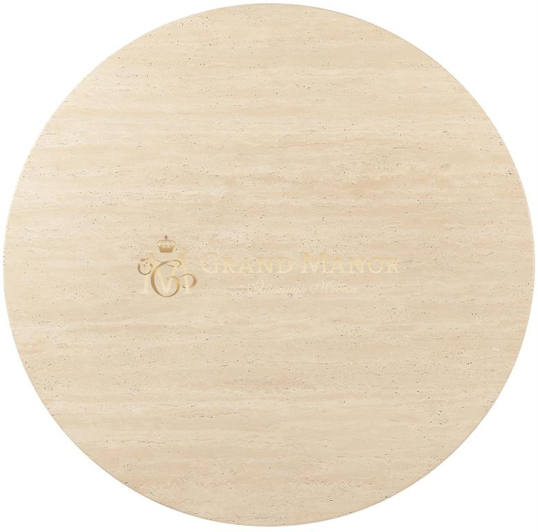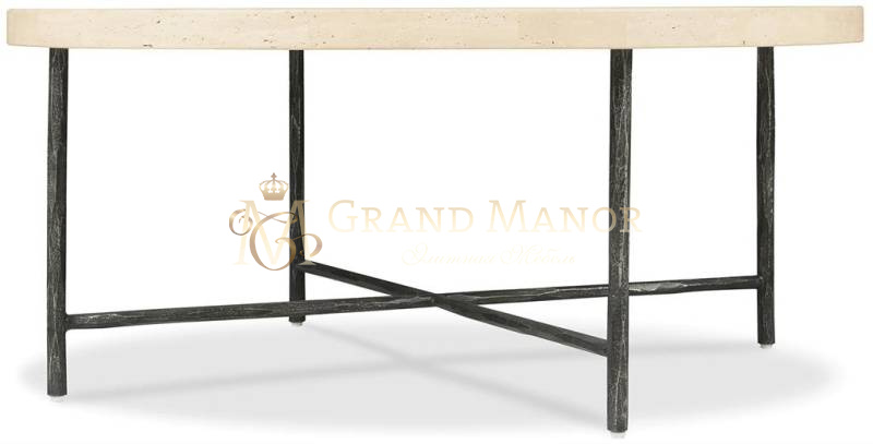 В этом круглом коктейльном столике текстурированное металлическое основание сочетается с Х-образным подрамником и столешницей из камня, что придает ему индустриальный и элегантный вид. Каменная поверхность придает ему естественную вариативность и долговечность, делая его центральным элементом, столь же функциональным, сколь и эффектным.