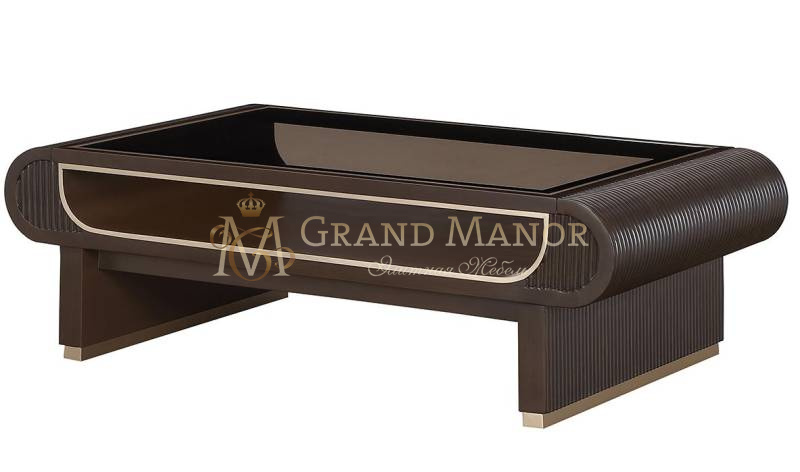 Этот столик, покрытый насыщенным цветом кофе эспрессо с тщательно проработанной отделкой, воплощает изысканность и артистизм.