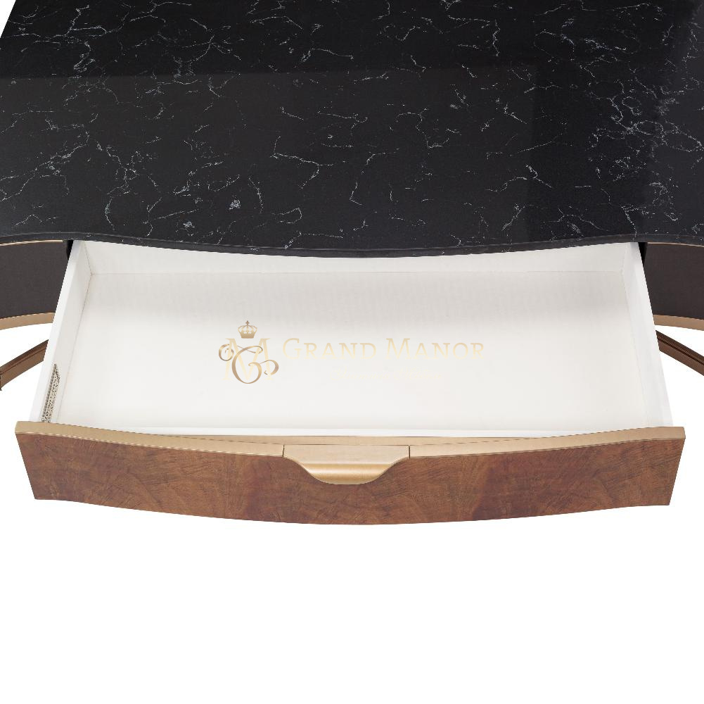 Настройте этот стол по своему вкусу, сохранив все необходимое для гостиной в ящике с бархатной подкладкой и разместив ваш любимый декор на столешнице из искусственного мрамора!