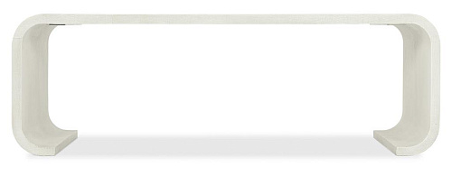 Мягкий, современный и органичный коктейльный столик Kai в форме округлого прямоугольника выполнен из дерева и рафии в успокаивающем песочном цвете и покрыт белой лакированной тканью, создающей атмосферу спа-салона.
