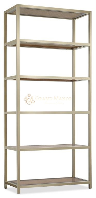 Эклектичный дизайн, идеально подходящий для демонстрации книг, декора или произведений искусства, сочетает в себе сталь, тростник и стекло, создавая эстетику, которая органично вписывается в любое современное пространство.
