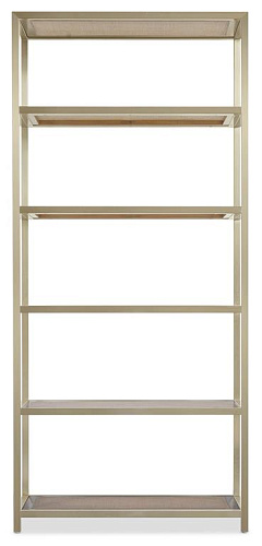 Придайте изысканный, современный вид своей гостиной или домашнему офису с помощью стеллажа. Этот переходный элемент сочетает в себе гладкую раму из нержавеющей стали с пятью стационарными деревянными полками из тростника, каждая из которых украшена стеклянными вставками.