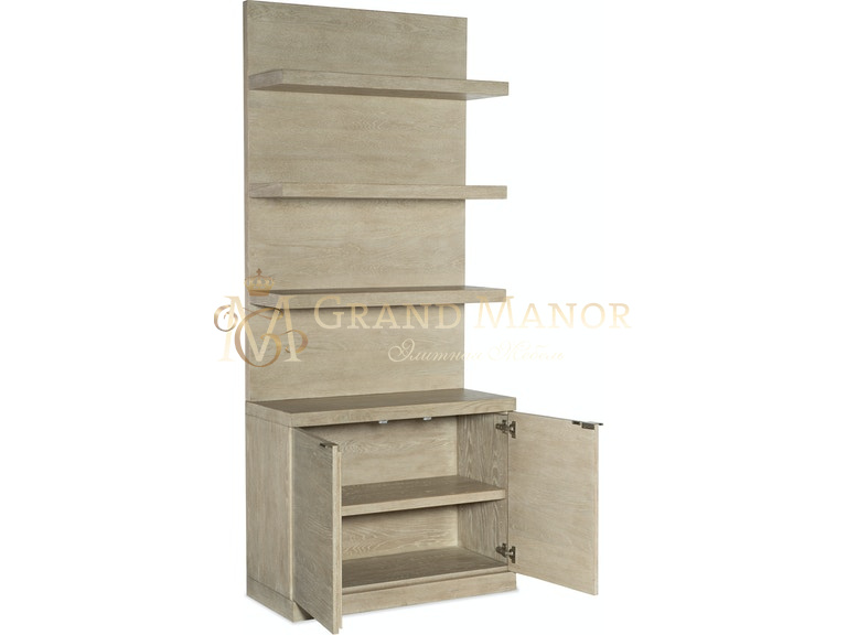 Состоит из двух частей: нижней тумбы и верхних полок.