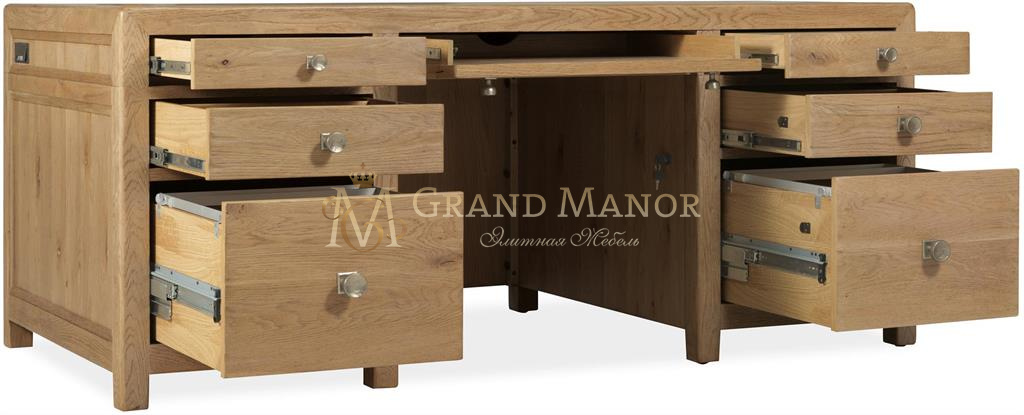 Стол руководителя Driftwood с отделкой Buckboard создан для профессионалов, которые ценят как эстетику, так и функциональность. Изготовленный из массива дуба и дубового шпона, этот стол руководителя оснащен семью ящиками, включая два запирающихся ящика для файлов, откидной полкой для клавиатуры и продуманной системой организации проводов для идеальной организации пространства. Выцветший на солнце дубовый оттенок создает ощущение тепла и текстуры, а продуманные решения для хранения делают его незаменимым в интерьере роскошного офиса. Идеально подходит для современных рабочих пространств, где историческое наследие сочетается с современным стилем.