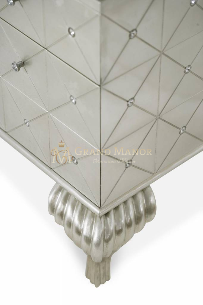 - верхняя часть стола по периметру декорирована металлом и затемненным зеркалом