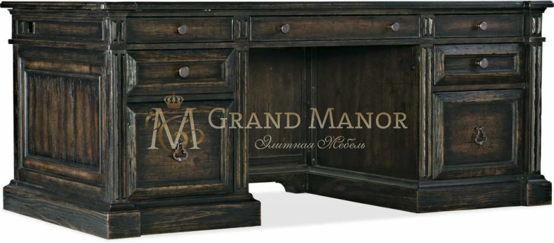 Семь ящиков. На столешнице вставка из натуральной кожи.