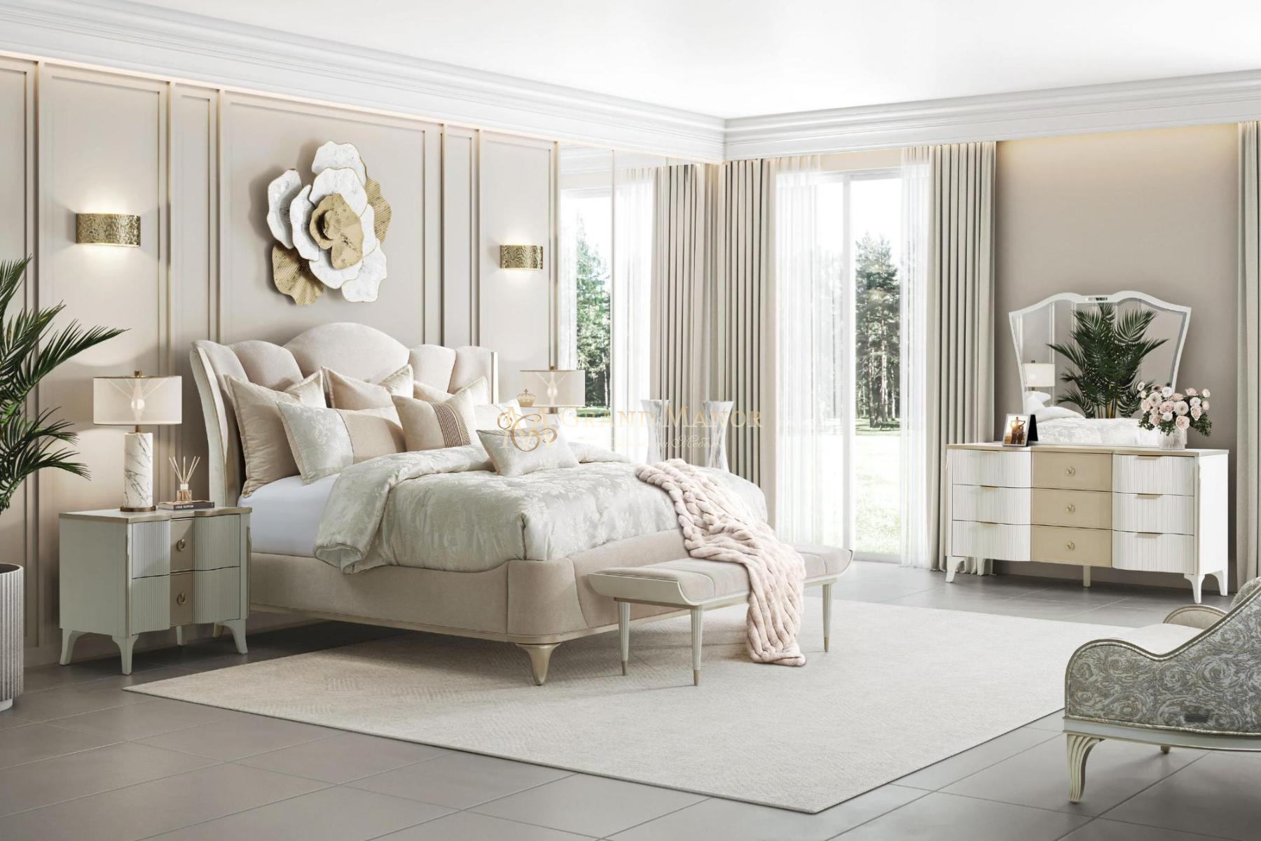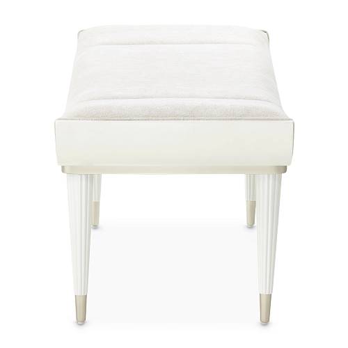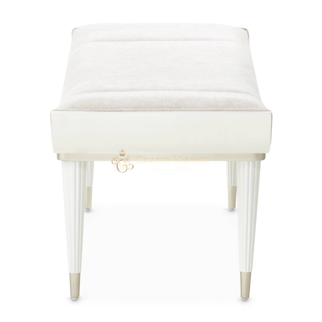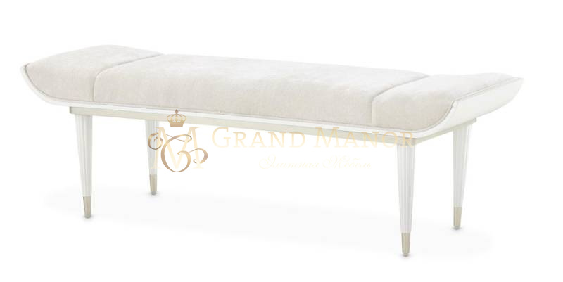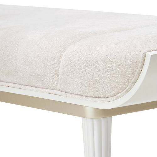 Рама, украшенная плавными изгибами, выполнена в кремово-жемчужном оттенке, который гармонично сочетается с отделкой цвета шампанского и заостренными текстурными ножками. Эта универсальная модель, созданная в сочетании с кроватью La Marisia, станет прекрасным акцентом или дополнительным местом для сидения в любой комнате.