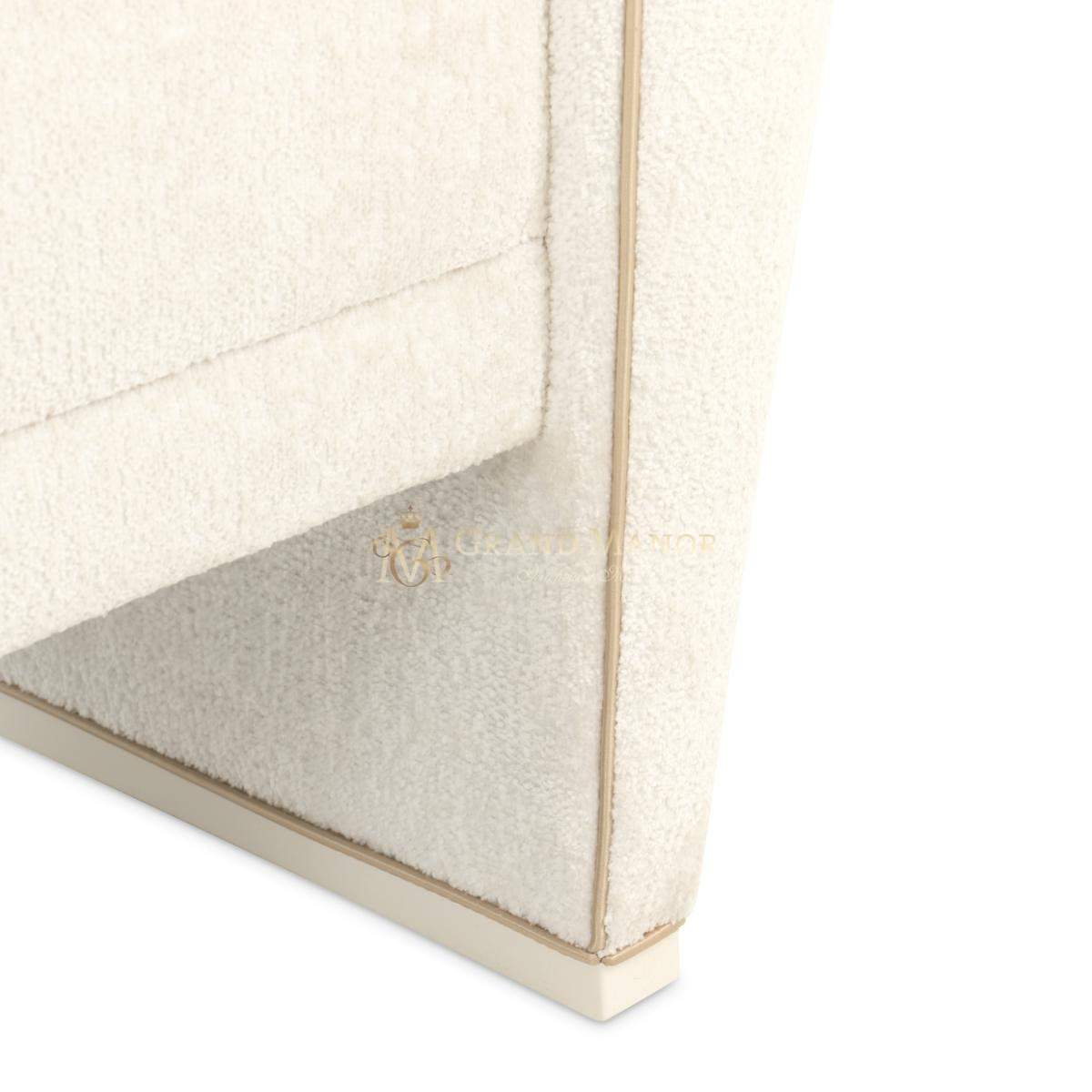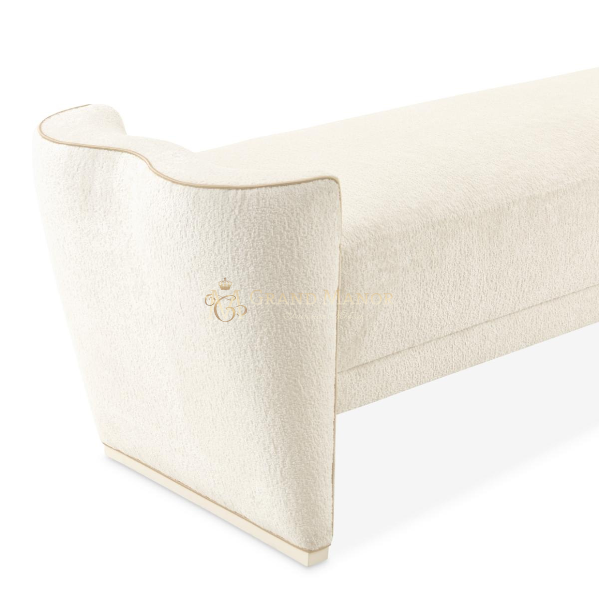 Прикроватная скамья La Terrazza воплощает элегантность и универсальность. Ее изящный силуэт с фирменными волнистыми линиями коллекции покрыт мягким жаккардовым шениллом нежного оттенка Starlight. Рельефные швы подчеркивают изгибы, придавая скамье легкость и динамику. Мягкое сиденье с пышной подушкой обещает комфорт на долгое время. Банкетка станет изысканным акцентом в любой комнате — у кровати, в прихожей или гостиной. Роскошь и функциональность идеально сочетаются, вписываясь в любой интерьер.