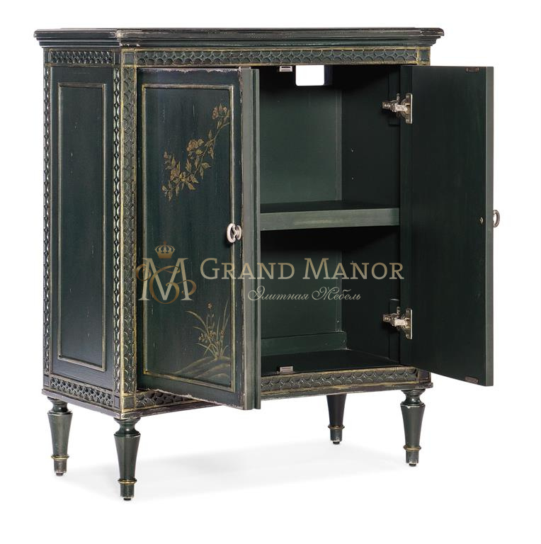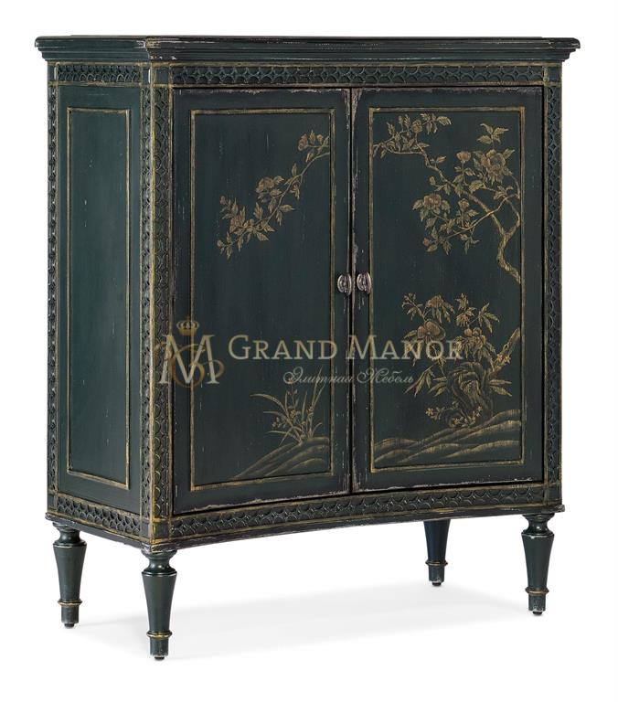 Отделка: Charleston Green: Выдержанная интерпретация классического темного (почти черного) зеленого цвета, который украшает отделку, ставни и двери во всем историческом районе Чарльстона. Украшен ручной росписью и мелированием в региональном стиле. Фурнитура в цвете античной бронзы.