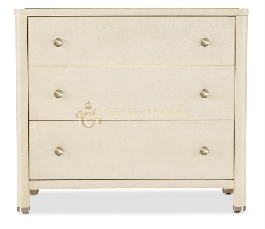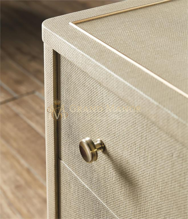 Комод Archives Raffia с тремя выдвижными ящиками привнесет естественные текстуры в интерьер вашей спальни благодаря обивке рафией и отделке льном. Этот комод оснащен тремя вместительными выдвижными ящиками, стенки и дно которых облицованы дубом. Сочетание деталей из рафии и плетеного тростника придаст вашему пространству неповторимый оттенок прибрежной элегантности.