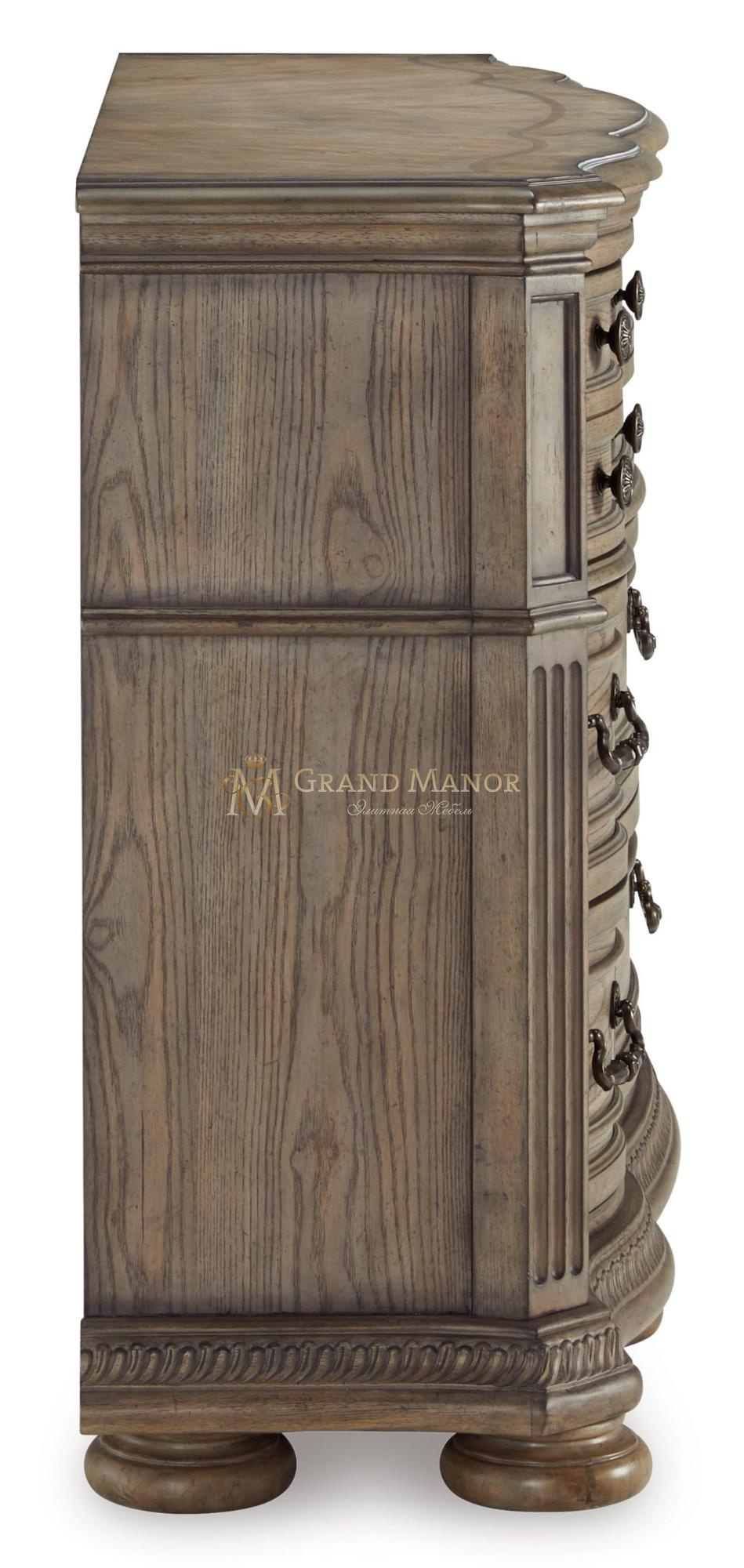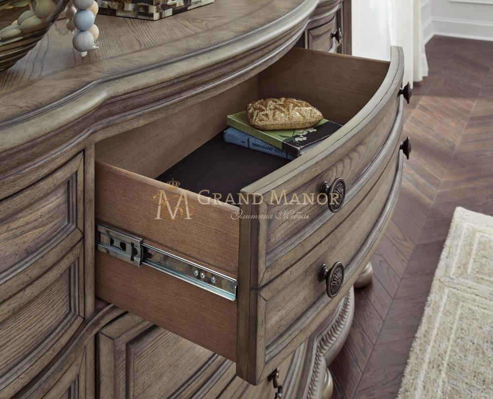 Объединяя традиционную элегантность с современным комфортом, этот комод выводит вашу спальню на новый уровень. Извилистые изгибы, инкрустации из ясеневого шпона и глазурованная отделка под старину излучают непреходящую изысканность. Ящики выполнены с достаточным количеством мест для хранения.