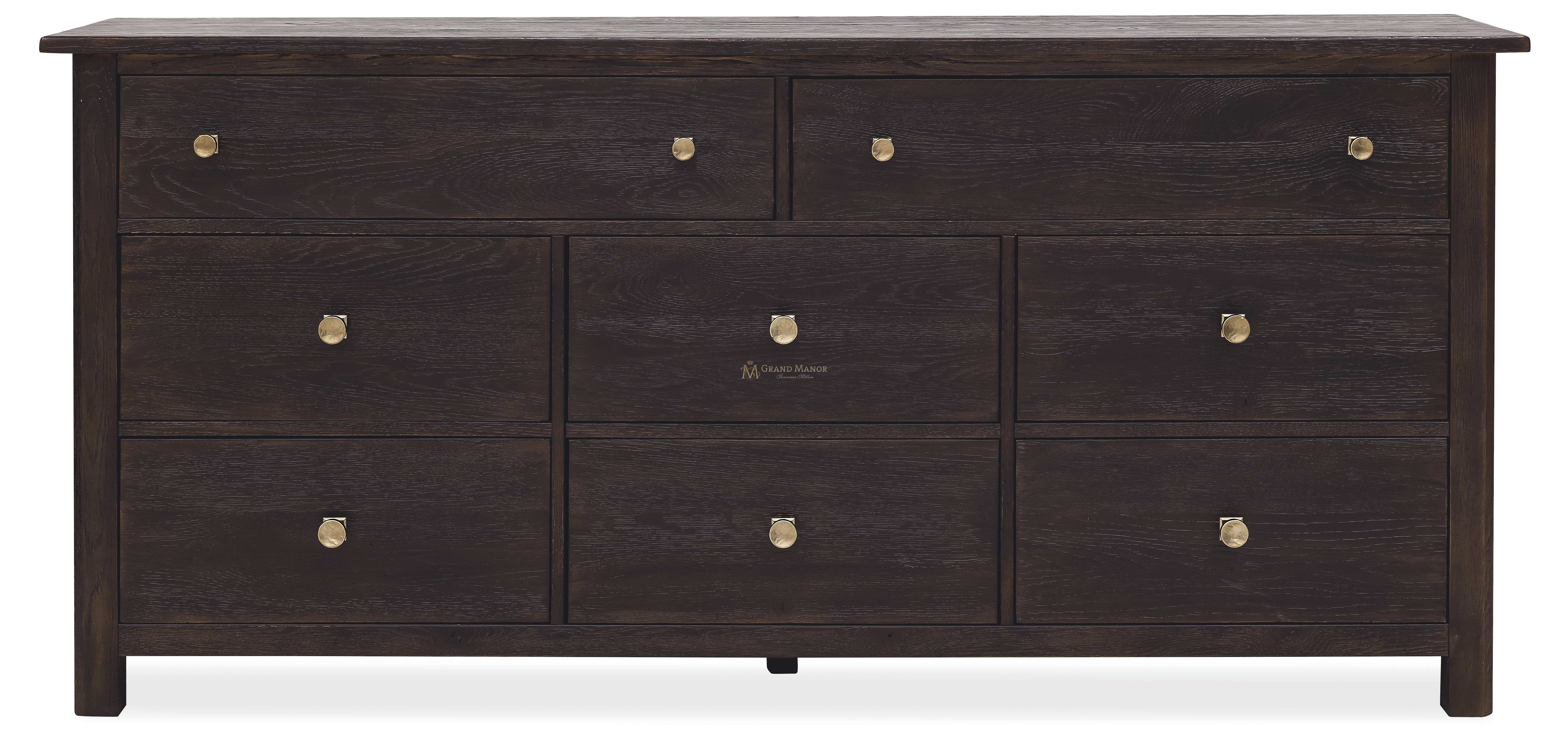 Этот комод с восемью выдвижными ящиками, отделанными кедром, и съемным лотком для украшений, выполненный в яркой отделке из обожженного дерева, идеально подойдет для стильной и организованной спальни.