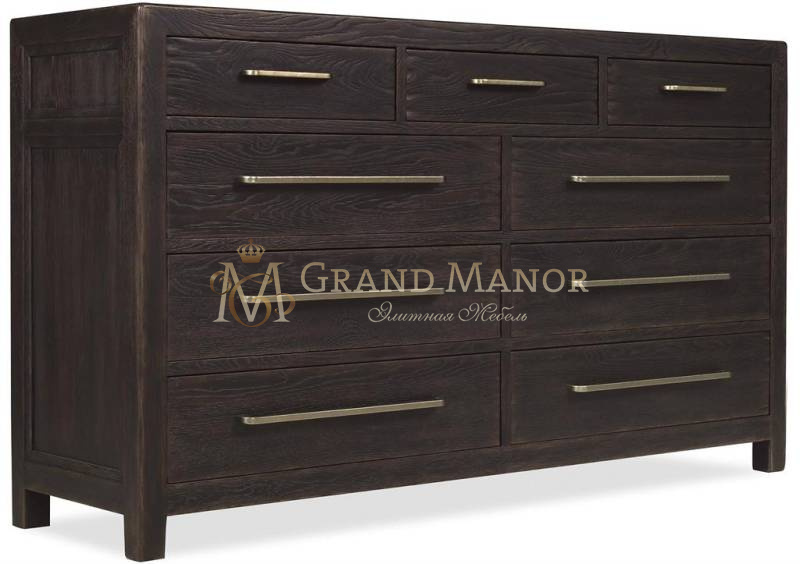 Этот комод из обожженного дерева сочетает в себе темные, угрюмые тона с девятью самозакрывающимися выдвижными ящиками, включая нижние ящики, облицованные кедром, и съемный лоток для украшений для универсального хранения в спальне.