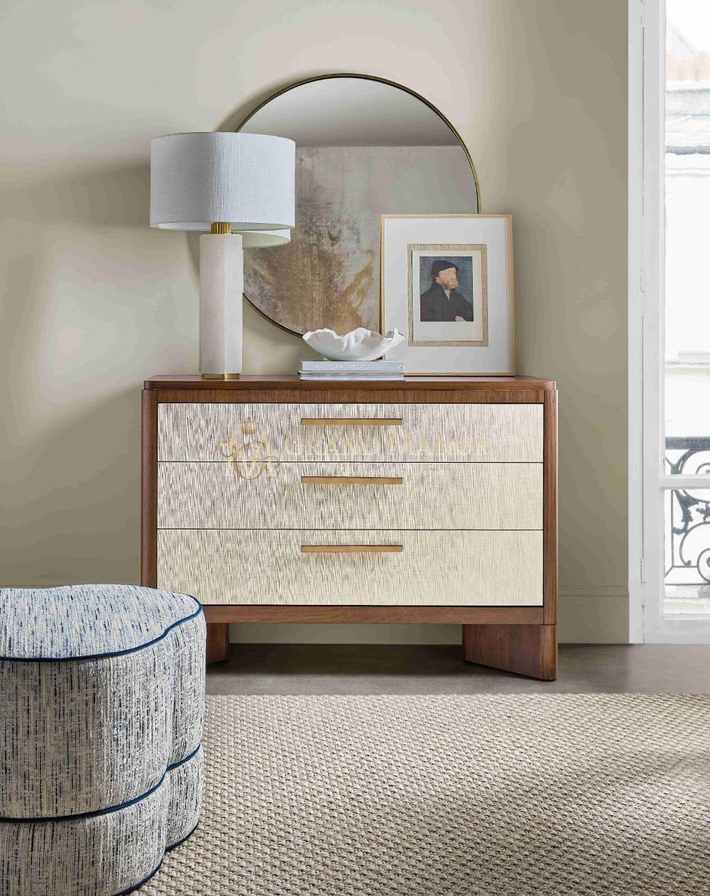 Благодаря трем самозакрывающимся выдвижным ящикам он обеспечивает достаточно места для хранения вещей, придавая изысканность спальням, коридорам или гостиным.