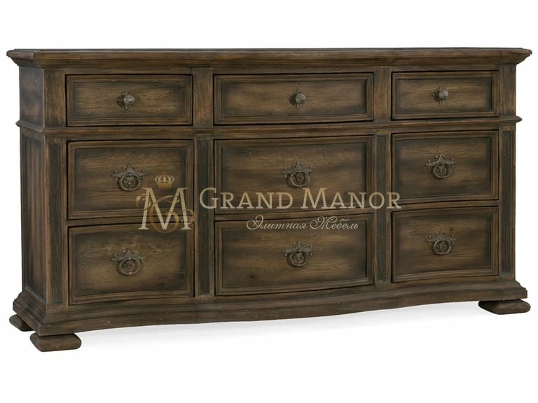 Девять выдвижных ящиков. Черный фетровый вкладыш в левом и правом верхнем ящиках.