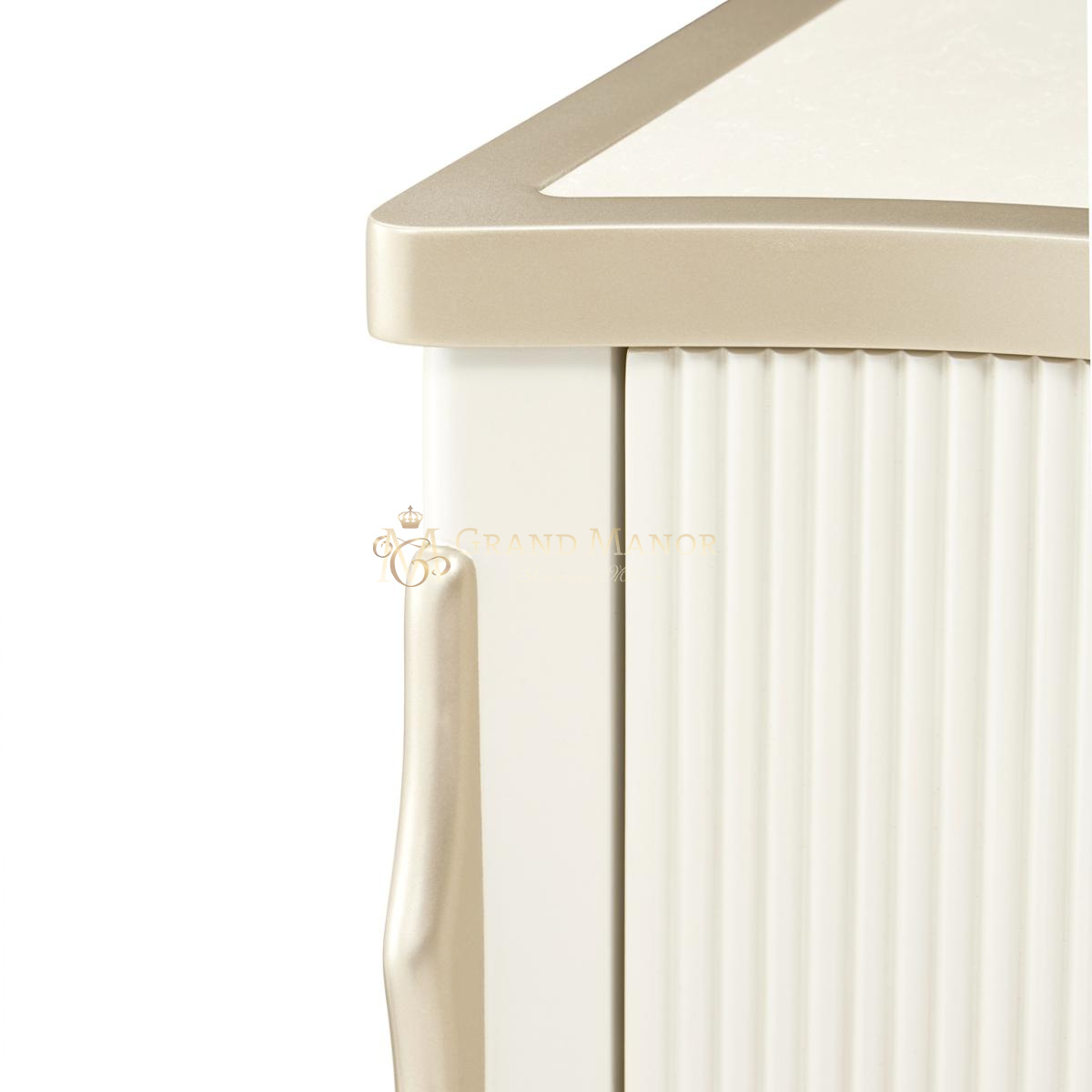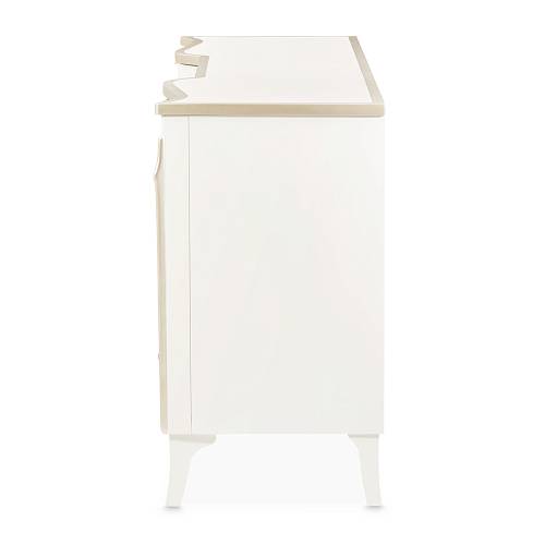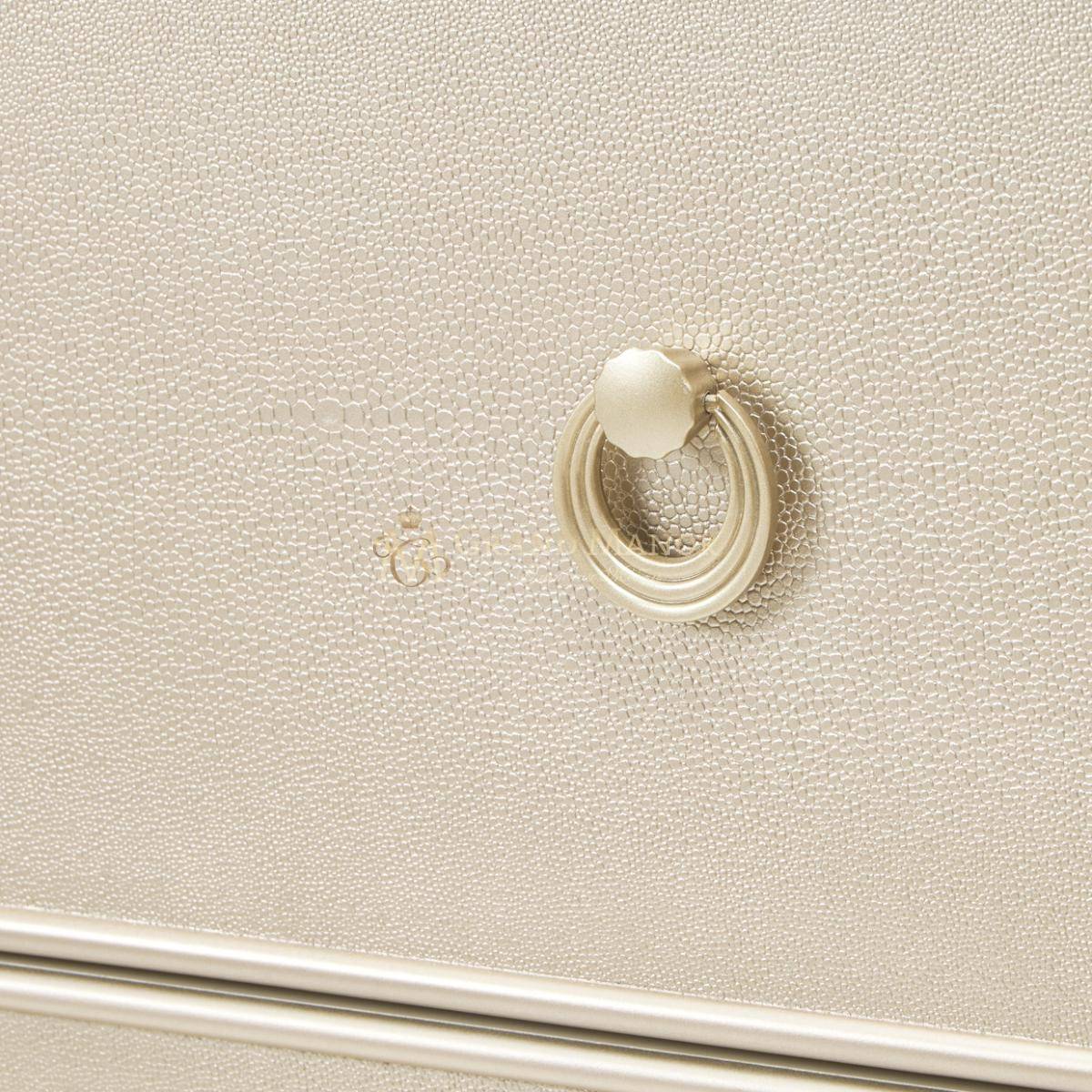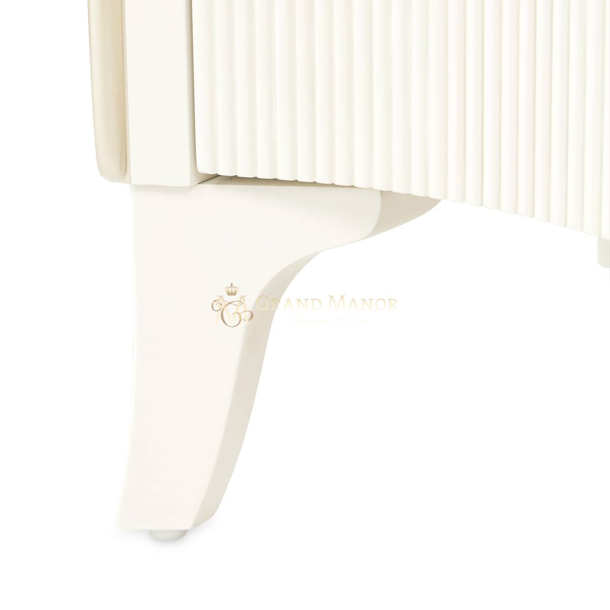 Комод La Marisia — это уникальное сочетание элегантности и функциональности, способное привнести атмосферу роскоши в любую спальню. Его утонченный силуэт подчёркивают перламутровые акценты и цвет шампанского, а столешница из искусственного мрамора придаёт изделию отполированный вид.