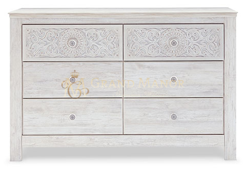 Если вы жаждете прибрежного шика или причудливого деревенского стиля, этот побеленный комод приглашает вас отправиться в город. Его характерная потертая от атмосферных воздействий отделка создает ощущение легкости и свежести и идеально подходит для спокойного отдыха в спальне. Со вкусом отредактированные линии и ручки-медальоны придают этому недорогому комоду эстетику высокого класса.