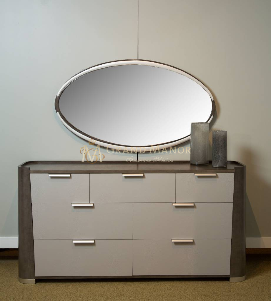 Комод имеет изогнутую деревянную раму с отделкой Slate.