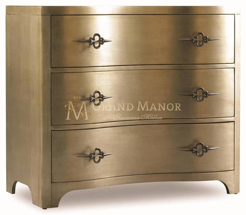 Побалуйте свою любовь к изящным изгибам и мерцающим поверхностям этим элегантным комодом Sanctuary с тремя выдвижными ящиками, отделанным старинным зеркалом и золотом, и он обязательно станет заметным элементом в вашем доме.