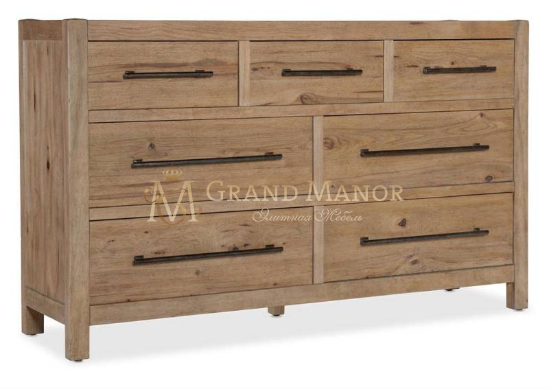 Коллекция Vineyard Row от Hooker Furniture вдохновлена органической красотой калифорнийской винодельческой страны, а вся коллекция сочетает в себе деревенский шарм и органическую эстетику долины Напа. Светлая отделка с темными акцентами, разработанная для использования в различных стилях жизни и регионах, позволяет гармонично сочетать как деревенскую, так и более изысканную обстановку. Такие детали, как обшивка из шпона высокого качества, кованая металлическая фурнитура в деревенском стиле, металлические подрамники и тонированное стекло, подчеркивают его аутентичный стиль.
