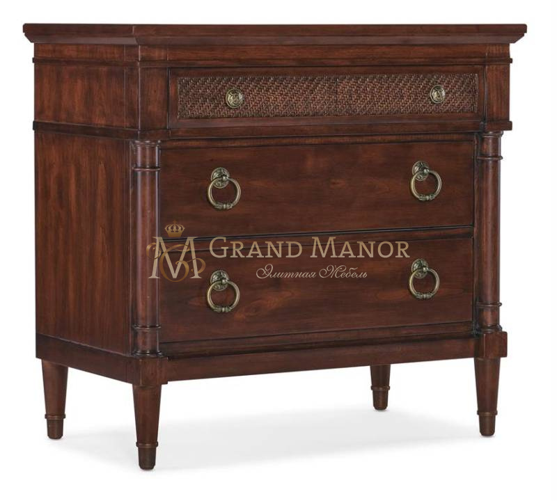Отделка: Maraschino Cherry: отделка выполнена с использованием шпона из натуральной вишни с зернистостью, демонстрирующего впечатляющую текстуру с выборочным включением естественных сучков, что обеспечивает насыщенную теплую вишневую отделку и гладкую утонченную эстетику. Круглые ручки и кольца из античной бронзы.