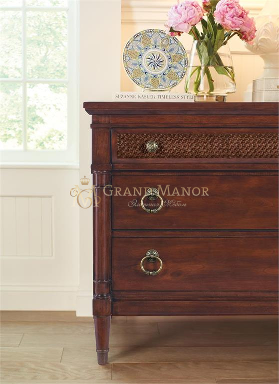 Charleston - это целая коллекция предметов домашнего обихода, которая воплощает в себе классическое традиционное очарование этого района, уединение на побережье и обновленное английское наследие. Традиционную основу коллекции составляют полупрозрачный шпон из соборной вишни, экзотические вставки из ореха и клена, потертые от времени вставки из черной вишни и изготовленная на заказ антикварная полированная фурнитура.