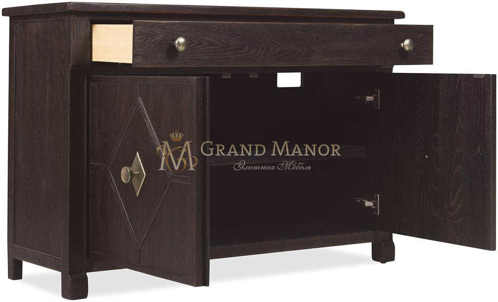 Отделка из обожженного дерева придает этому комоду для прихожей смелый современный вид. Благодаря самозакрывающемуся выдвижному ящику, дверцам с ромбовидным рисунком и встроенной полке в нем сочетаются функциональность и яркий дизайн.